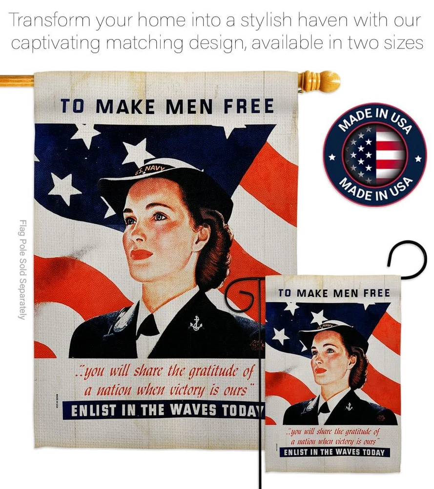 to Make Men Free Garden Flag Set Wood Dowel Armed Forces Navy USN Seabee Unit...
