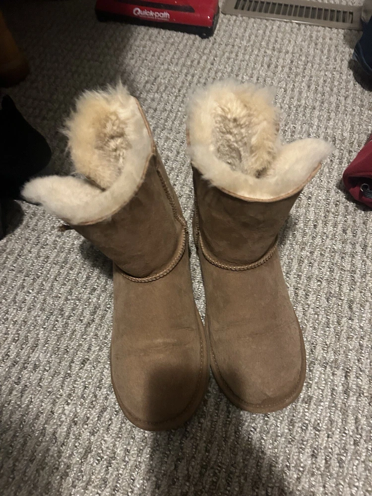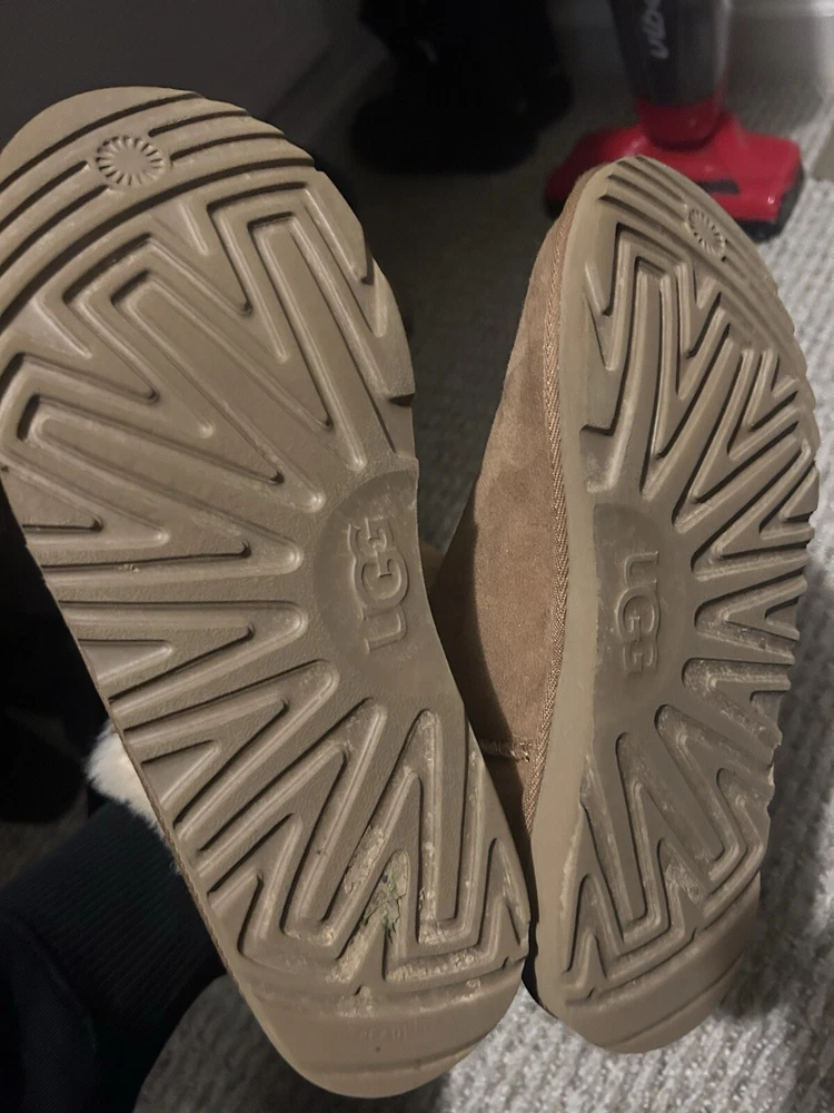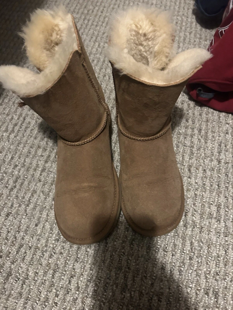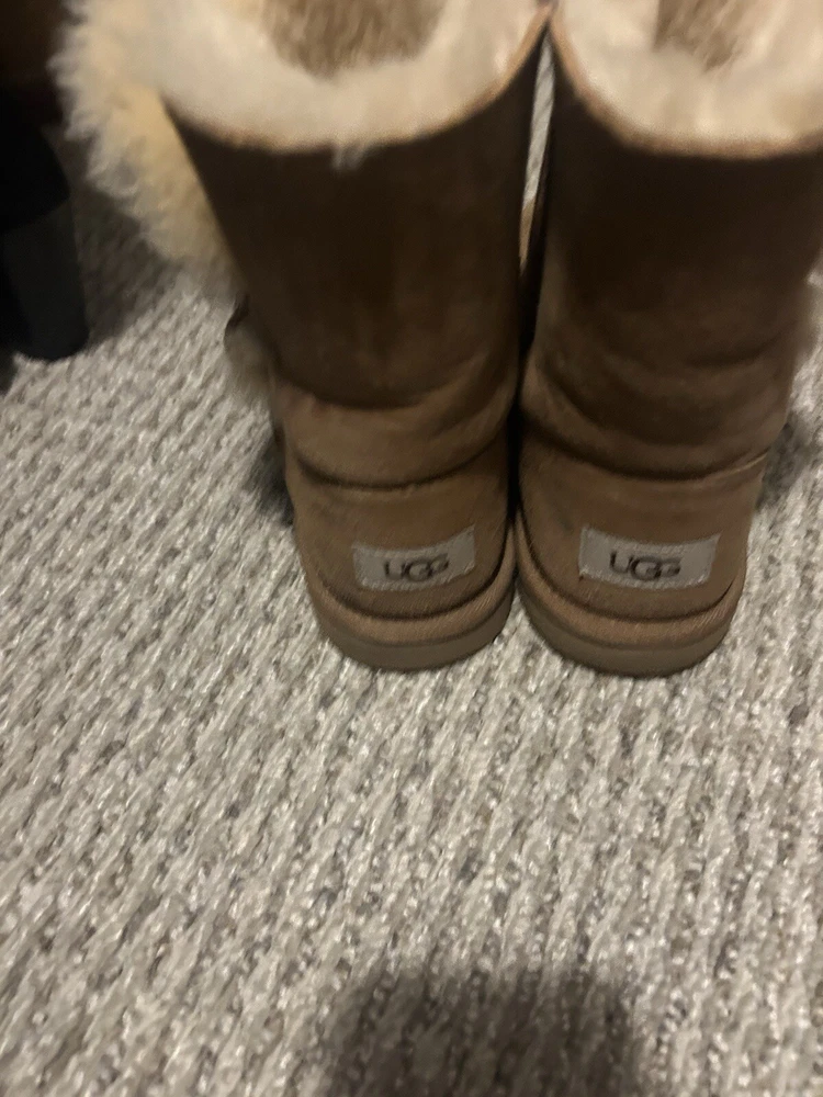 Elevate your shoe collection with these stylish UGG boots in size 6. Crafted in Australia, these boots are made for the fashion-forward woman who values both comfort and style. The UGG brand is known for their high-quality materials and attention to detail, making these boots a must-have for any fashion-savvy individual. These boots are perfect for any occasion, whether you're running errands or going out for a night on the town. The boots feature a sturdy sole, UGG branding, and a comfortable fit. Add these UGG boots to your wardrobe today for a touch of Australian luxury.