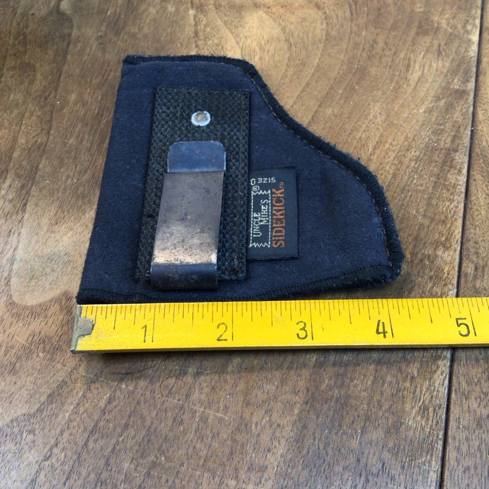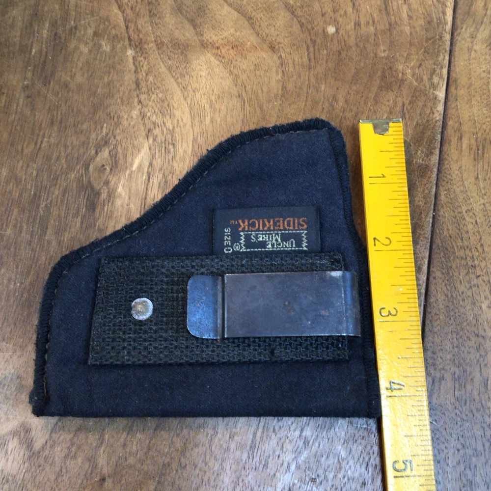 The Uncle Mike's Sidekick Holster Size 0 is a concealment holster designed for both revolvers and pistols. It is made of durable nylon and neoprene material in black color. This holster is suitable for carrying on the belt (OWB), hip, or inside the waistband (IWB) thanks to its clip attachment type. Perfect for securely holding your firearm while providing easy access during various activities like hunting or outdoor sports. Please look at the pictures closely, as this is the item that you will receive.