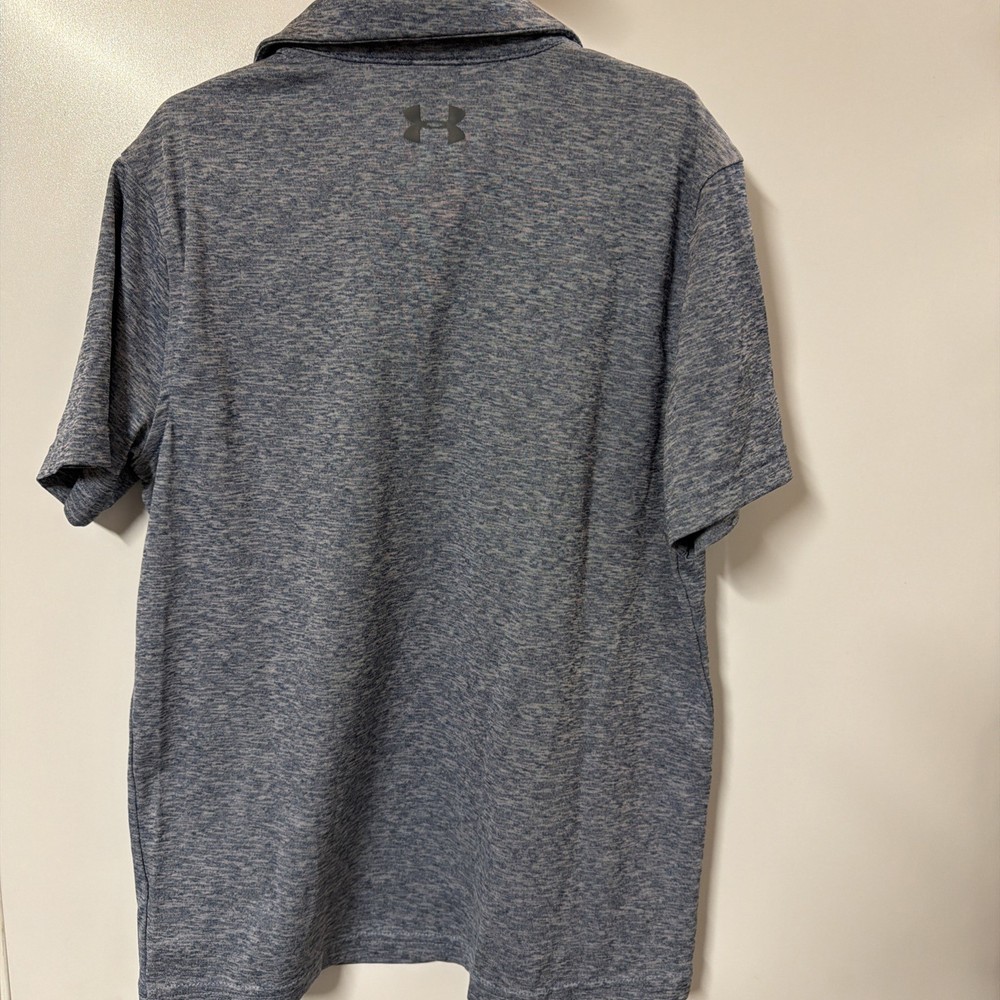 The product is an Under Armour boys' polo shirt in size youth large, designed specifically for golfing activities. The shirt is solid blue in color with short sleeves, making it both stylish and comfortable for young golf enthusiasts. With the Under Armour brand known for quality athletic apparel, this polo is sure to provide the performance and durability needed for a young golfer on the course.