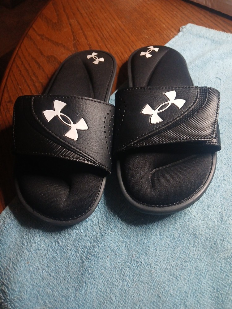 The Under Armour Slides in youth size 4y are unisex kids' sandals that feature a sleek black color and a comfortable slide style design. These sandals are perfect for active kids who need a durable and stylish footwear option. With the trusted Under Armour brand, you can be sure that these slides are designed to provide support and comfort for all-day wear. Perfect for summer days or casual outings, these sandals are a versatile choice for kids on the go.like new