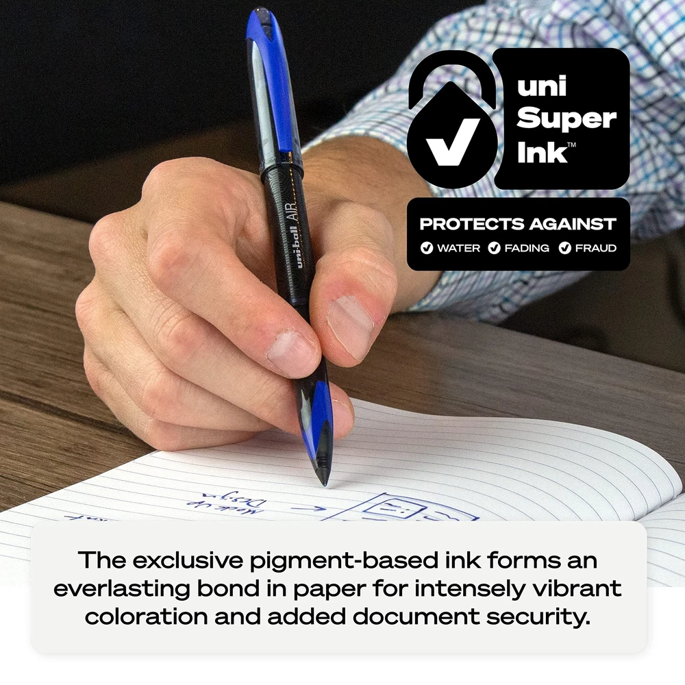 Step into a world of timeless elegance and unparalleled craftsmanship with Uniball, a brand that has woven its legacy into the fabric of fine writing instruments. With a heritage rooted in innovation and a commitment to excellence, Uniball has consistently delivered a writing experience that stands the test of time. Immerse yourself in the art of writing with Uniball's meticulously crafted pens, proudly made in Japan. Our legacy of precision and quality is evident in every stroke, ensuring that your thoughts flow seamlessly onto paper with each movement of the pen. From Gel Pens to Rollerball Pens, Ballpoint Pens to Fineliner Pens, and Mechanical Pencils, Uniball offers a comprehensive range that caters to every writing style and preference. Dive into a world of versatility with Uniball's diverse range of tip sizes, spanning from the ultra-micro 0.38 for intricate detailing, to the bold 1.0 for striking emphasis. Whether you're sketching, journaling, note-taking, or bringing ideas to life, Uniball empowers you to effortlessly transition between strokes, giving your writing a unique dimension that captivates the eye and stirs the soul. As you hold a Uniball pen in your hand, you're not just embracing a writing instrument – you're embracing a legacy of craftsmanship, innovation, and the pursuit of perfection. Each pen is a testament to our dedication to providing you with an unmatched writing experience, where every word is an ode to the art of communication. Start your story with Uniball, where heritage meets modernity, and each stroke is an invitation to immerse yourself in a world of boundless expression. Join a community of discerning individuals who appreciate the value of quality, heritage, and the power of the written word. Experience the magic of Uniball for yourself and discover the joy of writing that transcends time and leaves an indelible mark on every page. Rollerball Pen: The porous point of our roller ball pens lays down rich lines of varying widths determined by your grip and pressure Smooth At Any Angle: Explore a tailored-to-you writing experience with our porous fine-point pen that adapts to your personal grip style for effortless writing at any angle uni Super Ink: Water- and fade-resistant ink helps you compose long-lasting, high-quality documents you can archive; Our blue ink pens offer protection against water, fading, and fraud Quality Construction: Equipped with a sleek tip, our writing pens deliver consistent, free-flowing ink laydown; A convenient clip ensures that your favorite ink pen is always at hand Visionary Performance: Suitable for a variety of writing tasks and creative projects, our fine-tip pens offer the fluid ink of a marker and the durability of a rollerball