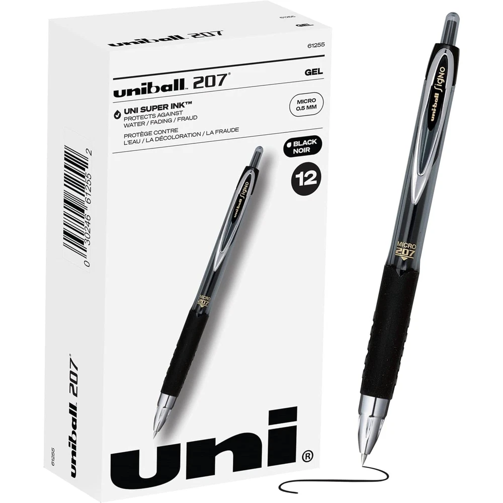 Step into a world of timeless elegance and unparalleled craftsmanship with Uniball, a brand that has woven its legacy into the fabric of fine writing instruments. With a heritage rooted in innovation and a commitment to excellence, Uniball has consistently delivered a writing experience that stands the test of time. Immerse yourself in the art of writing with Uniball's meticulously crafted pens, proudly made in Japan. Our legacy of precision and quality is evident in every stroke, ensuring that your thoughts flow seamlessly onto paper with each movement of the pen. From Gel Pens to Rollerball Pens, Ballpoint Pens to Fineliner Pens, and Mechanical Pencils, Uniball offers a comprehensive range that caters to every writing style and preference. Dive into a world of versatility with Uniball's diverse range of tip sizes, spanning from the ultra-micro 0.38 for intricate detailing, to the bold 1.0 for striking emphasis. Whether you're sketching, journaling, note-taking, or bringing ideas to life, Uniball empowers you to effortlessly transition between strokes, giving your writing a unique dimension that captivates the eye and stirs the soul. As you hold a Uniball pen in your hand, you're not just embracing a writing instrument – you're embracing a legacy of craftsmanship, innovation, and the pursuit of perfection. Each pen is a testament to our dedication to providing you with an unmatched writing experience, where every word is an ode to the art of communication. Start your story with Uniball, where heritage meets modernity, and each stroke is an invitation to immerse yourself in a world of boundless expression. Join a community of discerning individuals who appreciate the value of quality, heritage, and the power of the written word. Experience the magic of Uniball for yourself and discover the joy of writing that transcends time and leaves an indelible mark on every page. Gel Pen: Preferred by professionals for their stylish metallic accents and high-quality finish, our black gel pens come filled with smooth-flowing pigment-based ink that won't fade uni Super Ink: Water- and fade-resistant gel ink helps you compose long-lasting, high-quality documents you can archive; Our ink pens offer protection against water, fading, and fraud Quality Construction: Equipped with a textured rubber grip, our writing pens help you maintain a comfortable, controlled grasp; Convenient clip ensures that your favorite ink pen is always at hand Sleek Look: Each black pen in our gel pen set features sleek metallic barrel accents; Our black pens come equipped with 0.5-millimeter tips that draw vivid lines Includes: 12 black gel ink pens