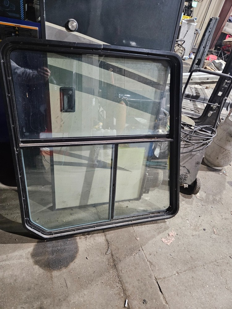Used rv window out of 08 holiday rambler endeavor drivers seat side window. Measures 36 3/4 in wide at the top 43 1/2 in wide at the bottom 45 1/2 in tall.
