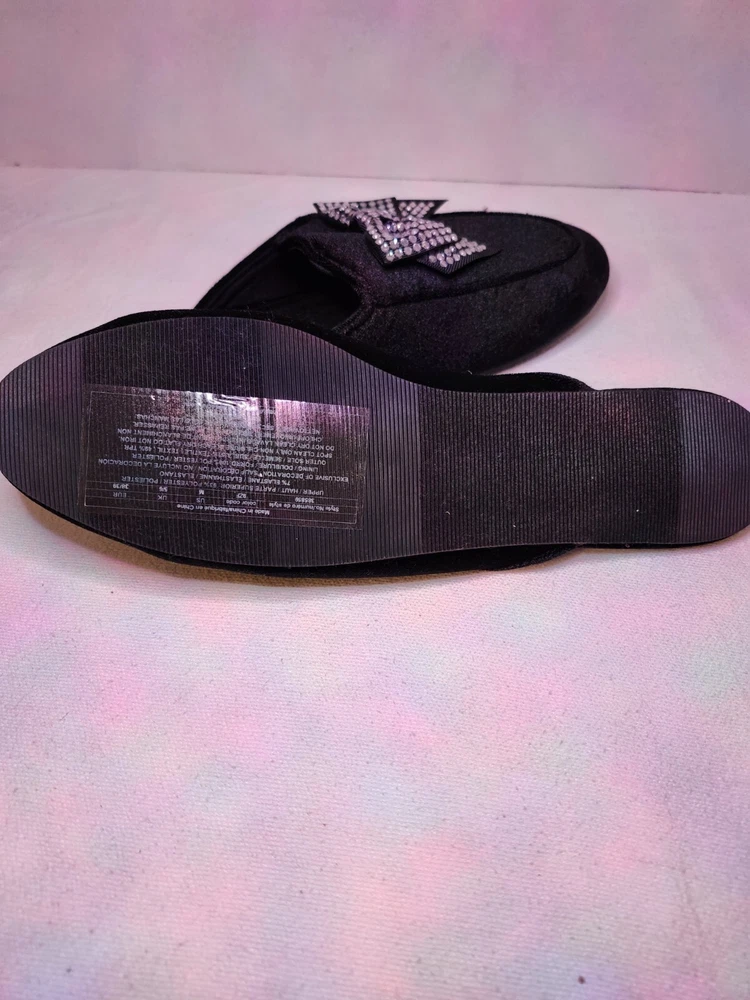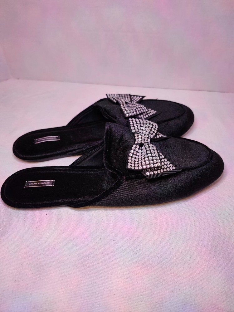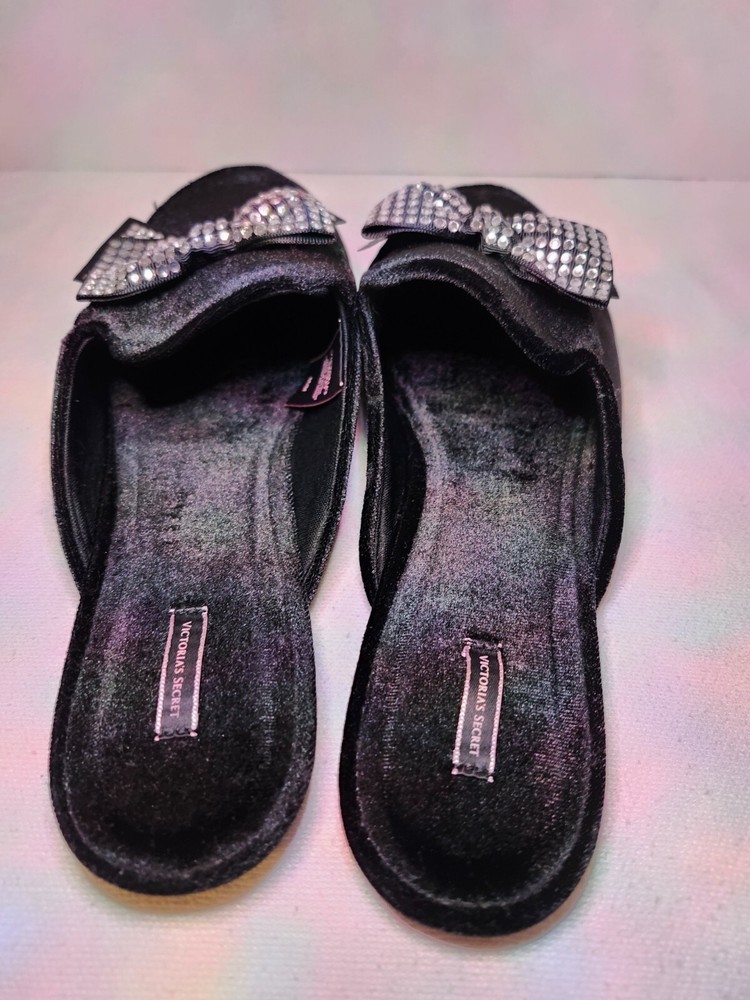 These Victoria's Secret black velvet mule slippers with rhinestone bows are a luxurious and stylish addition to any woman's wardrobe. The slip-on design and flat heel make them comfortable for lounging at home, while the rhinestone accents add a touch of glamour. The velvet fabric and polyester lining provide a soft and cozy feel, while the rubber outsole ensures durability. Perfect for relaxing in style, these slippers are a must-have for any fashion-forward woman.