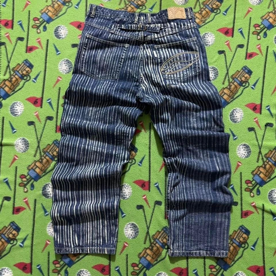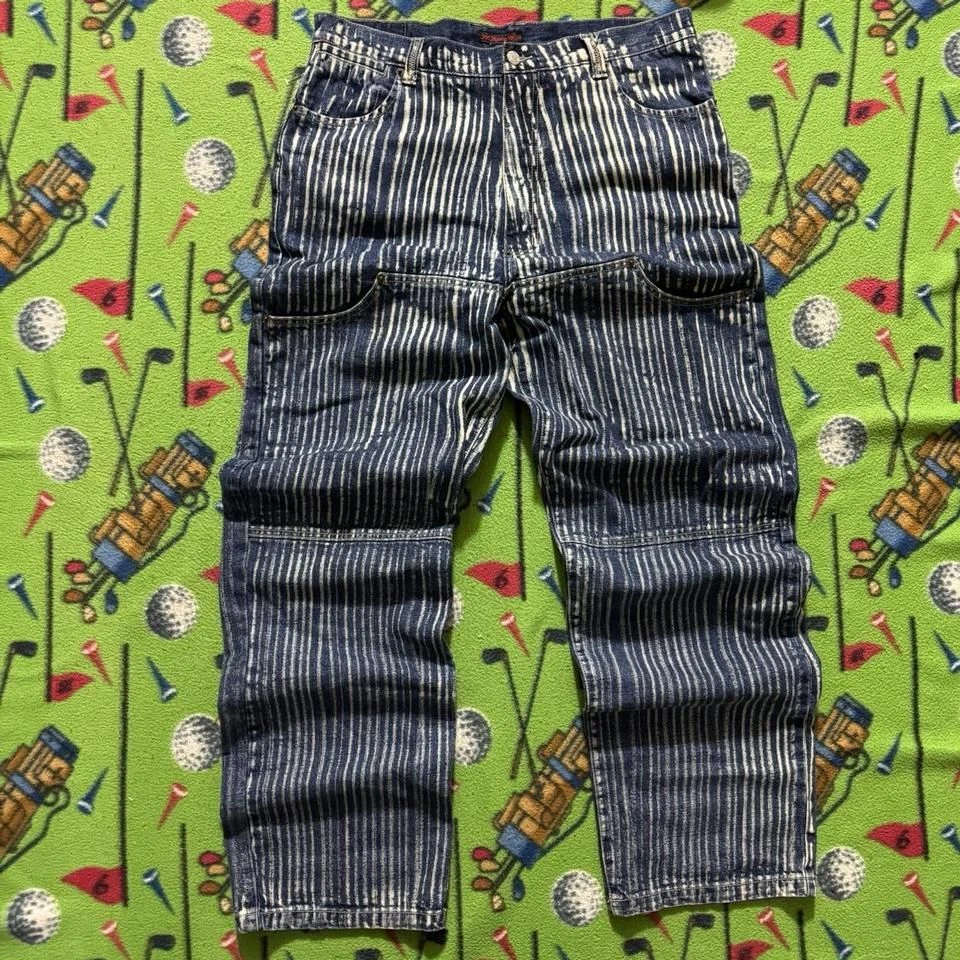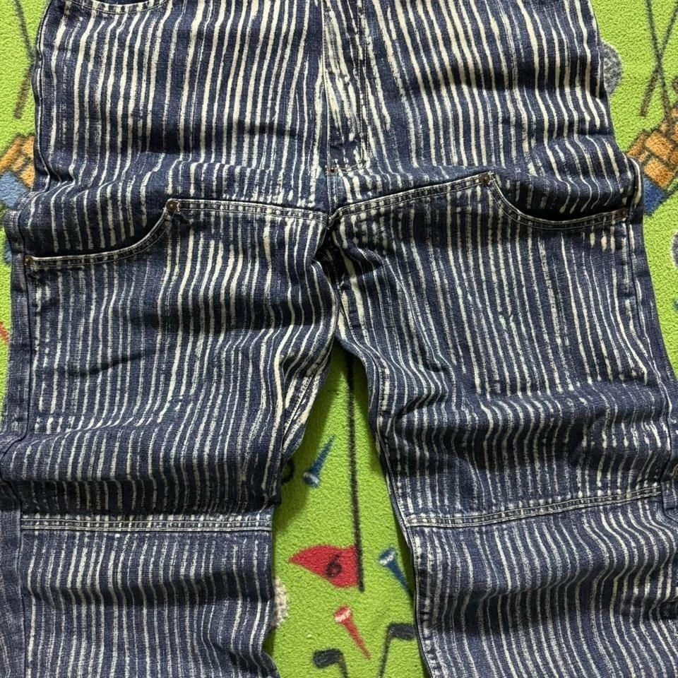 vintage 00s 2000s vans skate baggy wide leg pinstripes double knee denim jeans. the double knees are also accessory pockets which is sick. size: 34x31 with 9in leg opening condition: 10/10 no flaws #grail #vans #skate #doubleknee #y2k