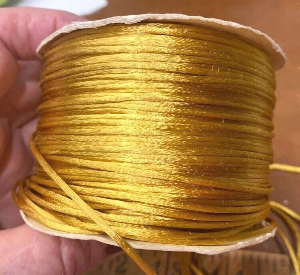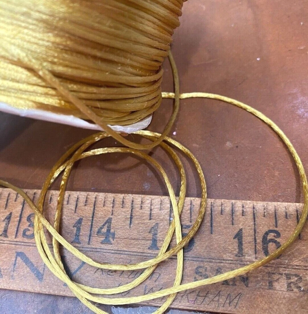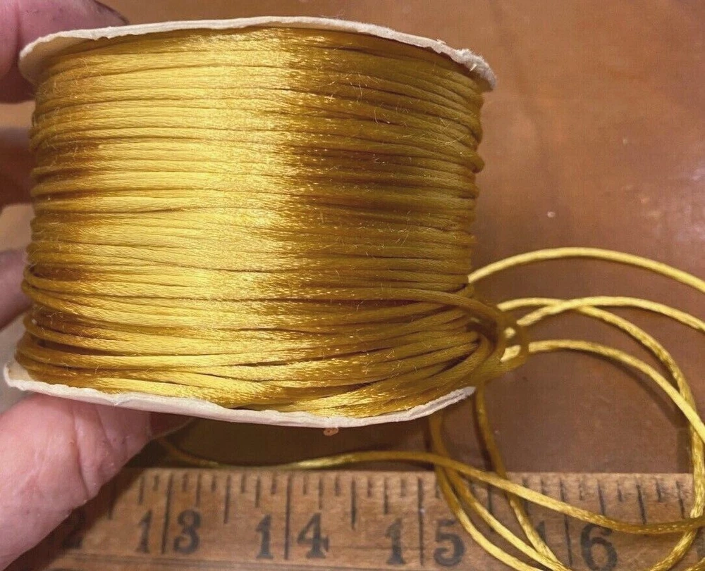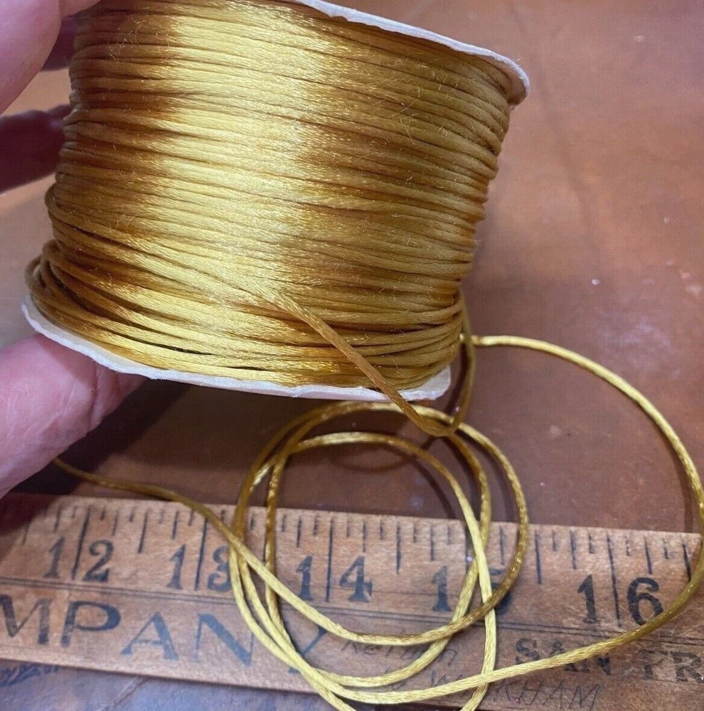 MPN: Does Not Apply Shape: round Unit of Sale: 10 yards Type: Cord Material: Satin Country/Region of Manufacture: United States Intended Use: costume, Hat/Millinery, Upholstery Color: Marigold Brand: Unbranded Item Width: 1/8"