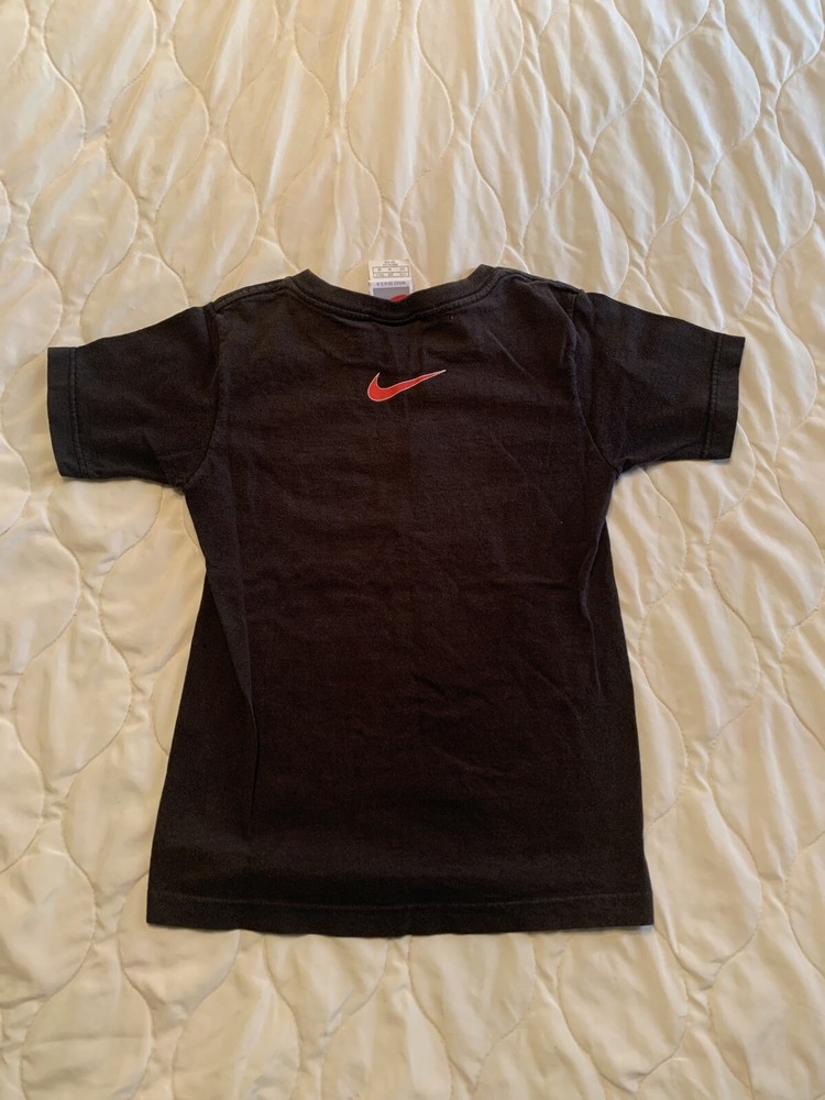 This vintage 80s 90s Nike Gray Tag T-Shirt features a spell out Swoosh logo on the front, showcasing the iconic Nike Air theme from the USA. The black cotton t-shirt with a crew neck and short sleeves is perfect for traveling, activewear, and casual occasions. Made in the United States, this regular fit t-shirt in size M is machine washable and embodies the retro style of the 80s and 90s era, making it a unique addition to any boy's wardrobe. Measurements: Pit to Pit: 1 3 Sleeves: — Total Length: 1 7.5