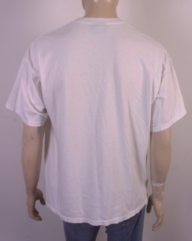 This rare vintage T-shirt from the 90s/00s is a must-have for any Y2K enthusiast! Featuring the iconic Count Chocula cereal character, this shirt is made of 100% cotton and is machine washable for easy care. The solid white color and short sleeves make it a versatile piece that can be worn in any season, whether you're going for a casual look or dressing up for Halloween. The shirt is available in size XL and has a regular fit, with a crew neckline and fabric type of 100% cotton. It's perfect for fans of the classic Count Chocula cartoon and cereal, and is sure to be a standout piece in any vintage clothing collection. Don't miss out on the chance to own this rare and unique T-shirt! Looks awesome! Beautiful true vintage 2006 tee, awesome look and fade to the graphics. Certainly has the look/feel/appearance of a late 90's era tee, falls more into that Y2K era looking type of tee. Has a few very tiny, minor little speck type surface marks, but overall very solid. Measurements: Pit to pit: 23.5 Sleeve length: 8.5 Length: 28.5 Shoulders: 23