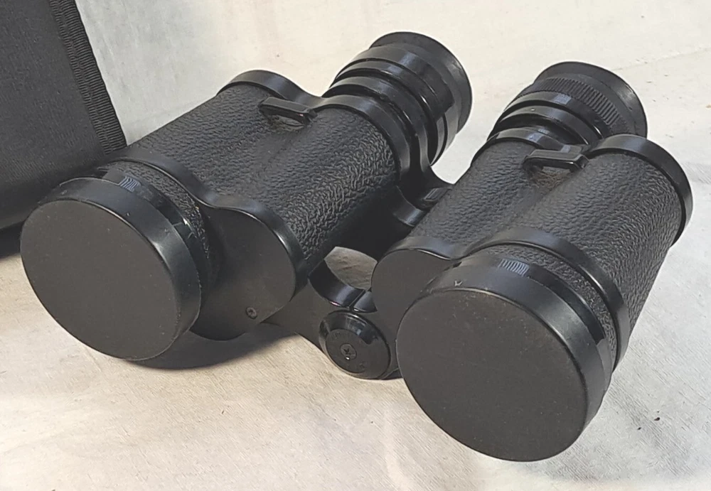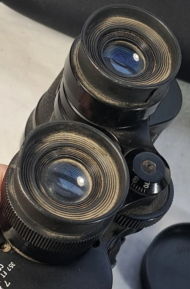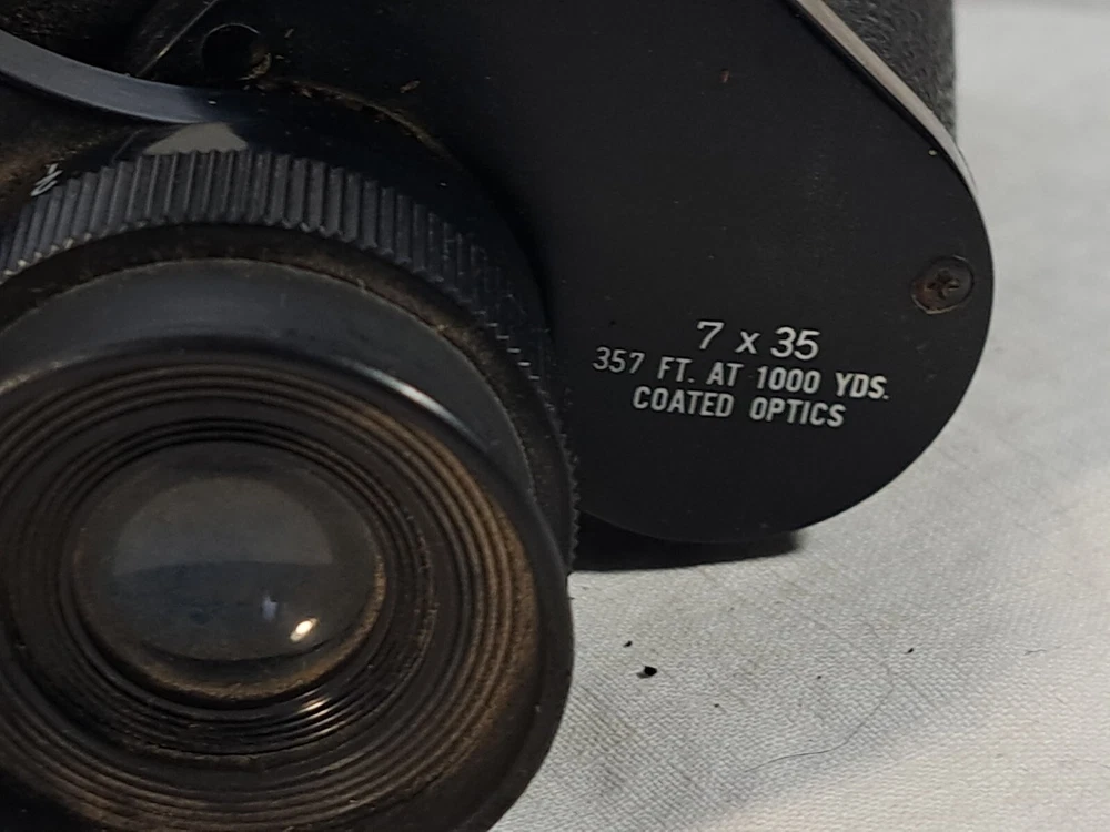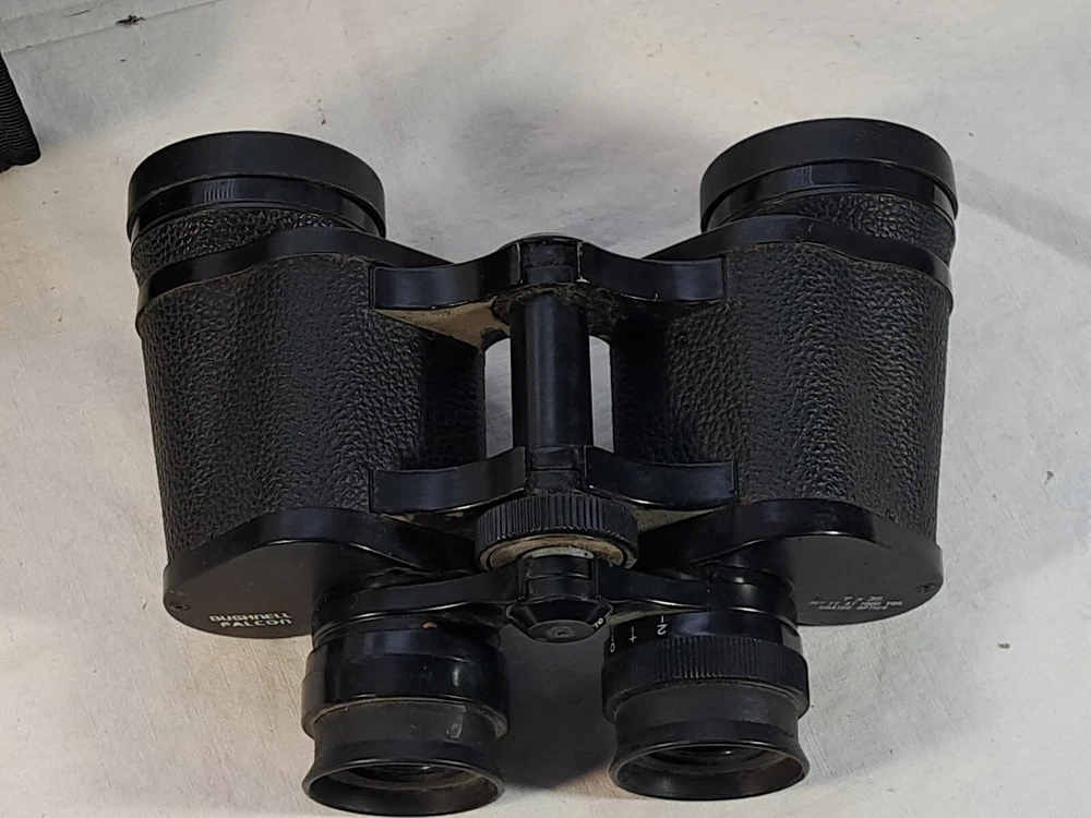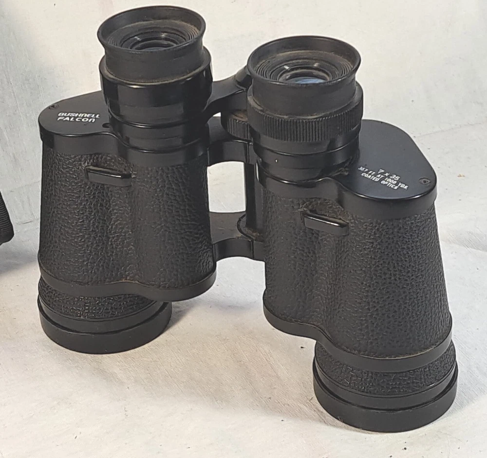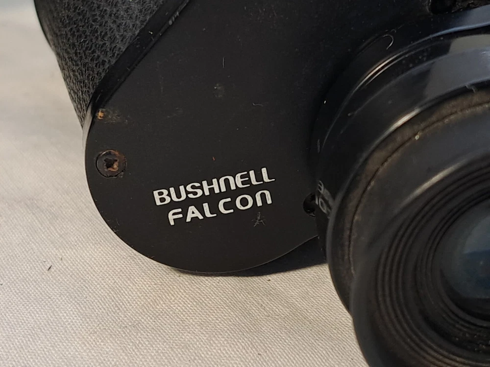 Vintage Bushnell Falcon binoculars measures (opened) almost 7 1/4" wide each lense 2" appear clear and in good condition...with vinyl case