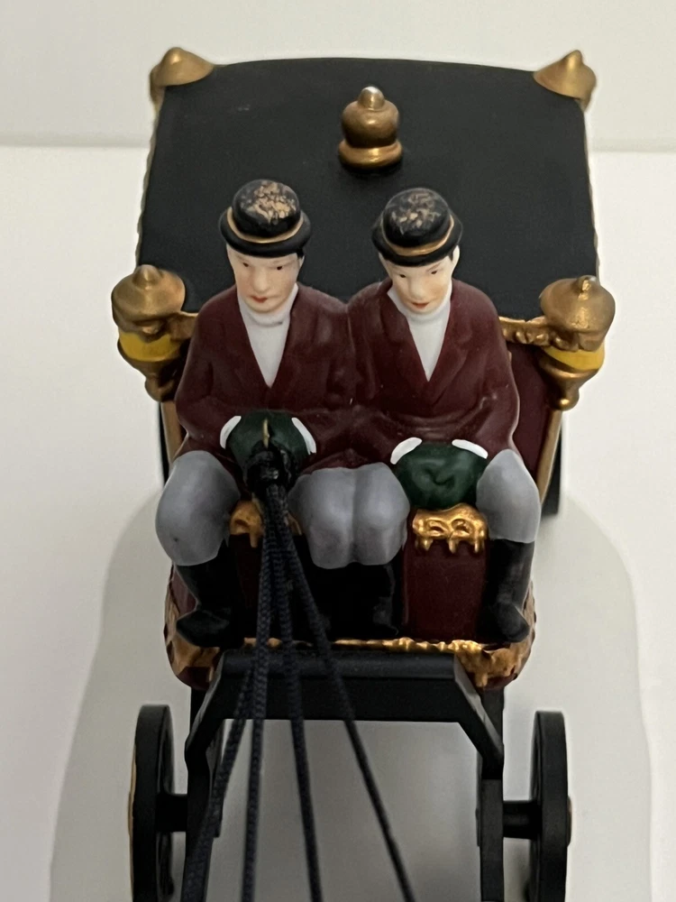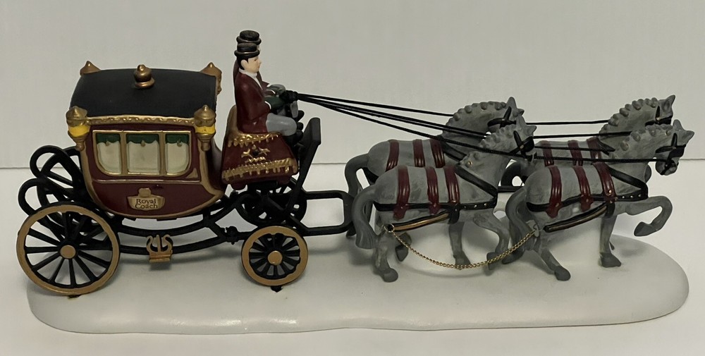 Listing for a 1989 Department 56 Dickens Village figurine ROYAL COACH featuring a Victorian coach with two coachmen and four gray horses pulling the coach. This figurine was retired in 1992. It is in mint condition with original box and packaging material. No chips or discoloration. The outer sleeve to the box has very little storage wear. It is approximately 11 inches wide and 5 inches tall. From my mom's large Dicken's Village collection and she was very particular when putting them away for storage. I will be listing from this collection daily. Thank you for checking it out. Shipped USPS Ground Advantage and shipping will automatically be combined with other items when placed in your cart