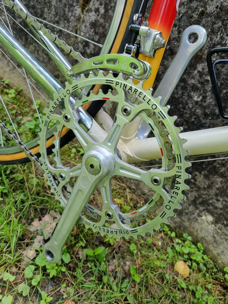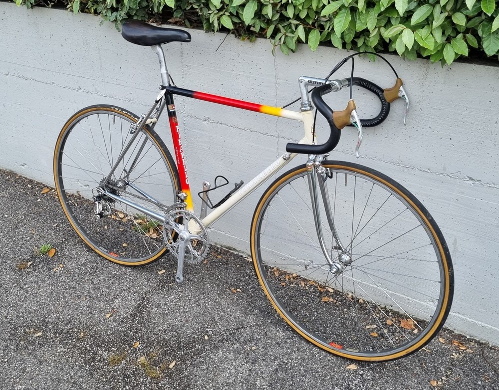 Bellissima bici anni 80 Bici a marca PINARELLO Modello MONTELLO Modello top di gamma, tra le prime del modello Colore stupendo conservato.. Misura o taglia 53 x 53 Montata tutta con componenti coevi dell'epoca. Gruppo CAMPAGNOLO SUPER RECORD Pezzi pantografati Cerchi MAVIC da 28 Eccezionale. Manubrio in pelle cucito a mano artigianalmente Ideale anche per Ciclostoriche come EROICA POLVEROSA INTREPIDA ARTICA MOSERISSIMA BATTAGLIA VIGNA STORICA ed altre.. Bici venduta come in foto senza pedali. Per altre informazioni scrivimi un messaggio. Venduto come in foto. Prima di fare offerte verificare bene le foto e fare eventuali domande. Non sia ccetta la restituzione dell'oggetto una volta aggiudicato. Italian vintage BIKE PINARELLO model MONTELLO Amazing model, estimate 80s years.. Size 53 x 53 (vertical and horizontal tube center / center) - Small Medium Stem and chainring, gears, pantographed. Campagnolo components SUPER RECORD Wheels 28" MAVIC Amazing conditions. Price is for bike as in photos, without pedals. For more informations please write me he on ebay. Word wide shipment available This is a one-of-a-kind treasure. This is your chance to own a piece of cycling history. You need this item for your collection. Note: Additional pictures available upon request. It may show certain characteristics of age. PLS use the zoom to watch minor signs of use even if its conditions are great); this bike is pre owned so it s not selling as new perfect one. This bike has a true frame. Please feel free to ask us any specific questions you may have about this treasure. I tried my best to picture all paint defects, please study photos carefully as the are part of the description. Please use the zoom option for greater details, and bid with confidence. There are no returns accepted - what you see is what you get. Please ask your questions in advance. Shipping worldwide possible, I put EUROPE costs, if you are out EUROPE, PLEASE contact me to calculate standard or quick type of shipment to your countery. Any additional taxes, duties or charges are responsibility of the buyer, and these fees are not included in the item price or shipping cost. For more details please contact your country's custom office. POLICY Item back is not possible, see all photos very well and if you have questions, please writeto me before to put a bid. Please look carefully all the pictures to avoid troubles for description; you will receive exactly all you see in the pics.. So pls contact me for any question
