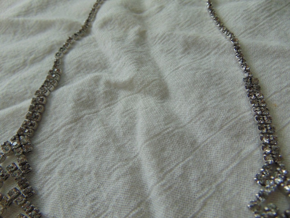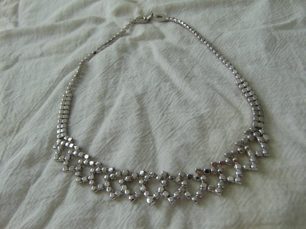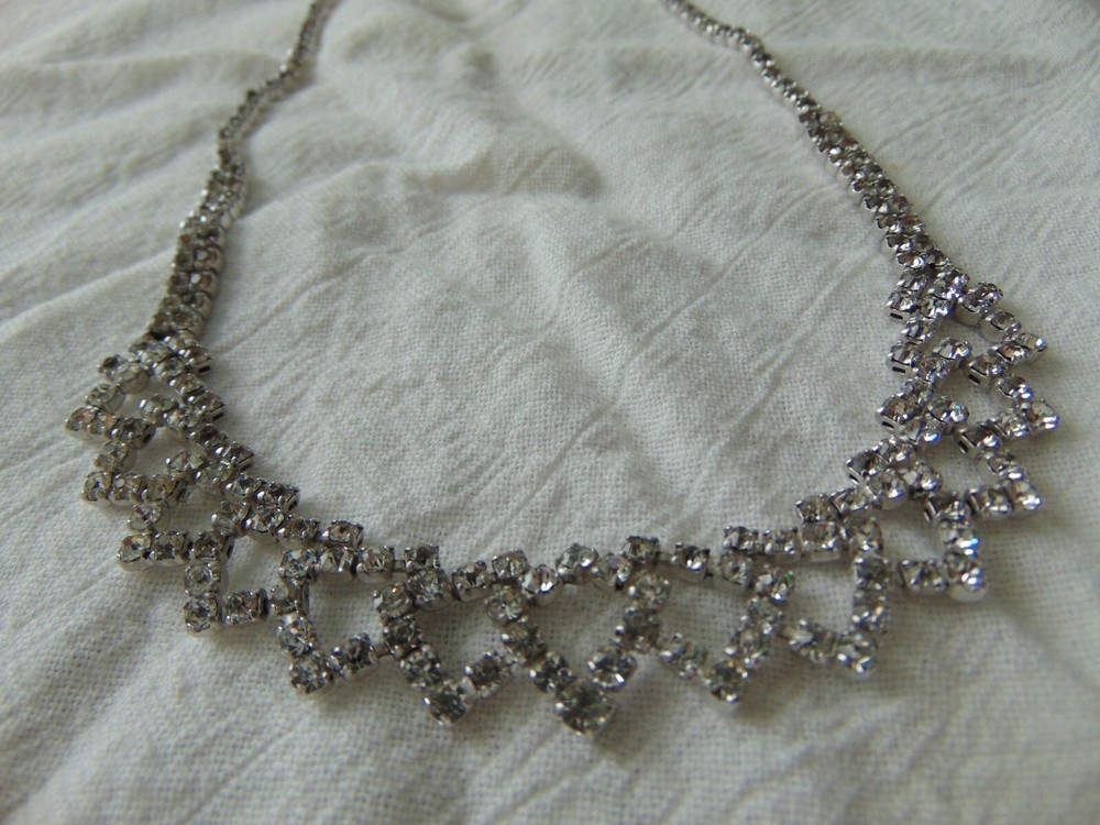 $ 10.03Vintage Silver Tone Collar Necklace With Floating CZ And Foldover Clasp