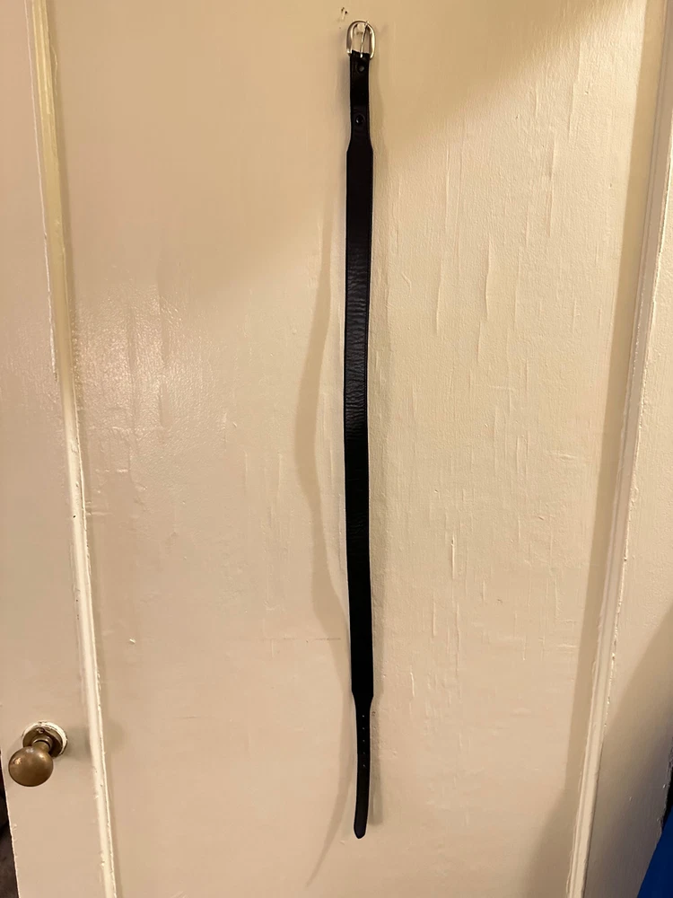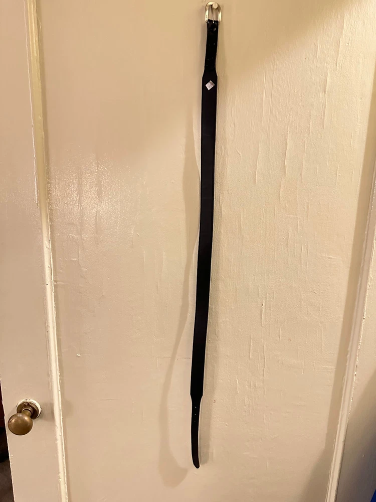 vintage Women Black Leather Belt Medium 38" x 1 1/8" silver Buckle