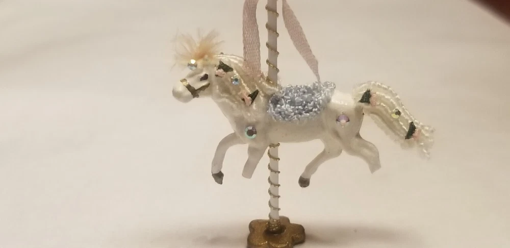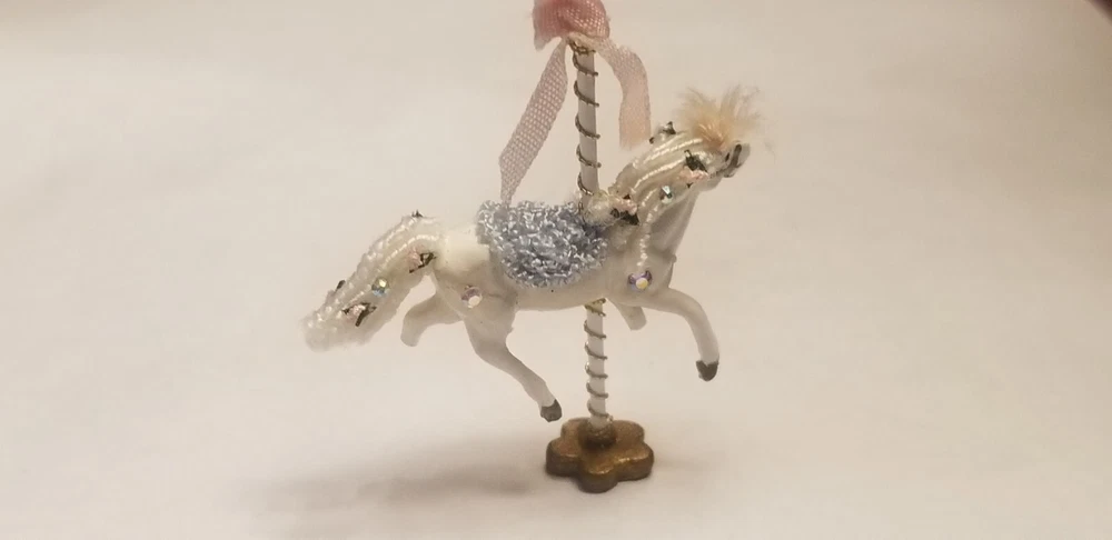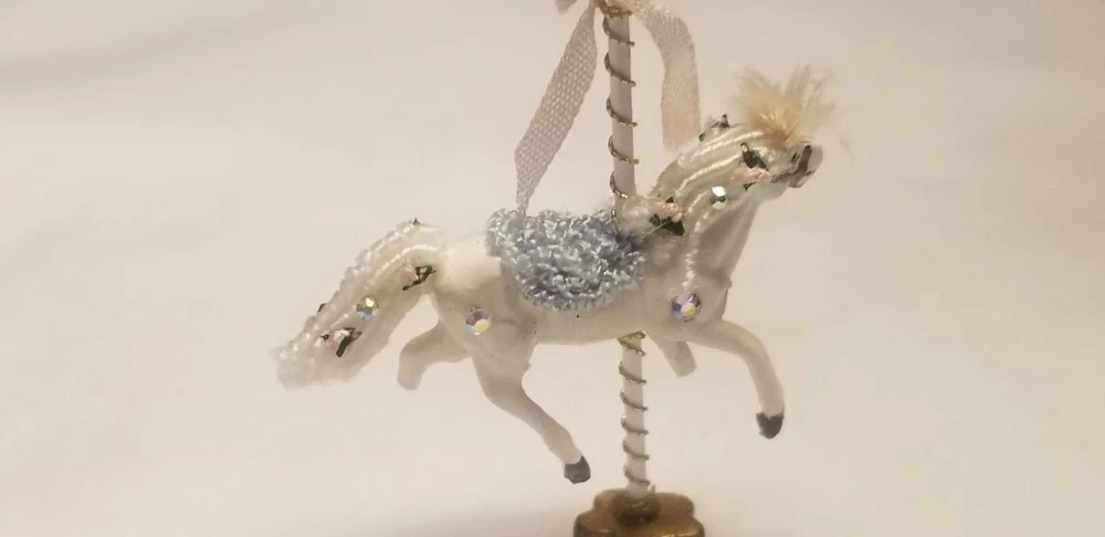 Vintage artisan dollhouse MINIATURE white carousel horse. unmarked. some loss to two of the legs. will combine shipping. International customers welcome.