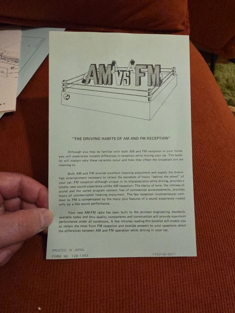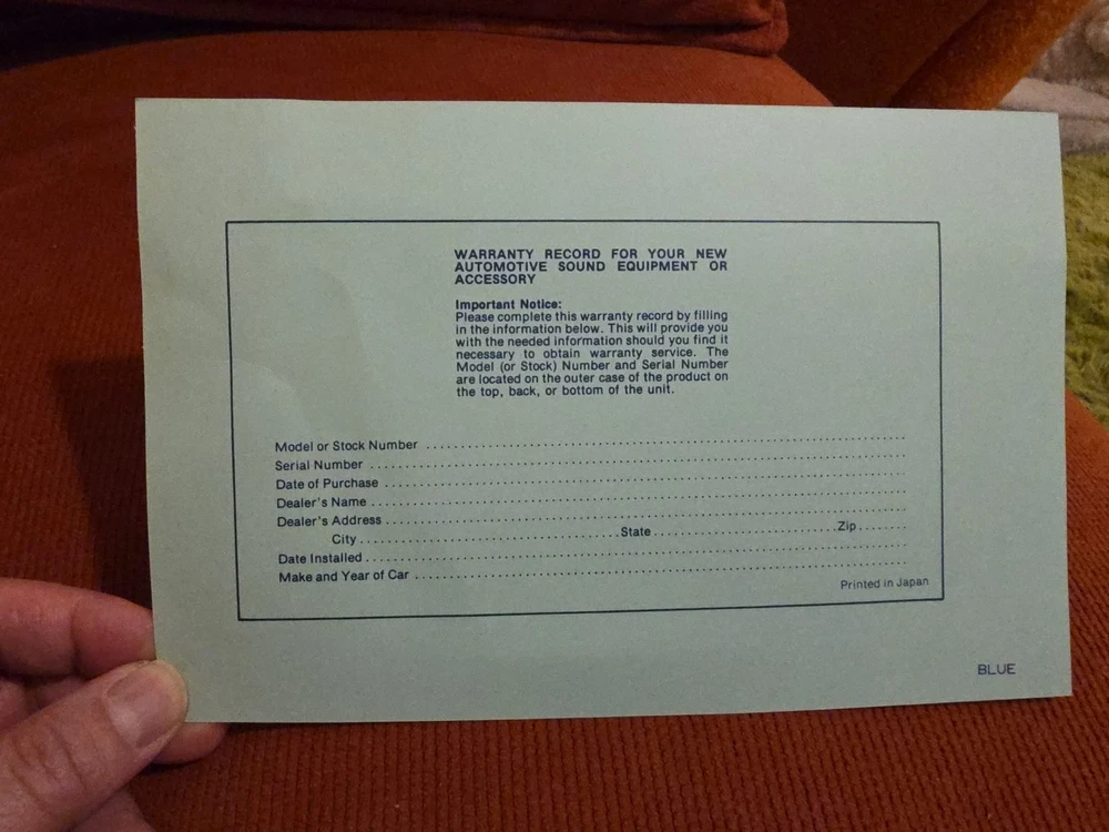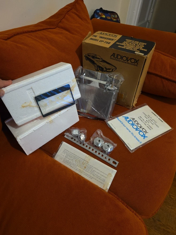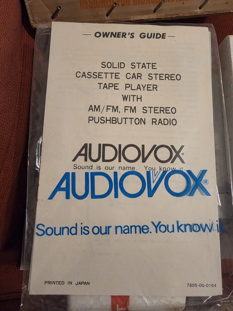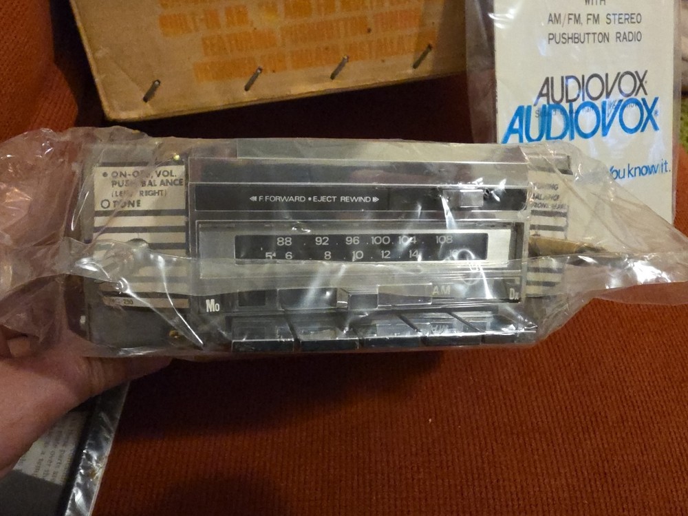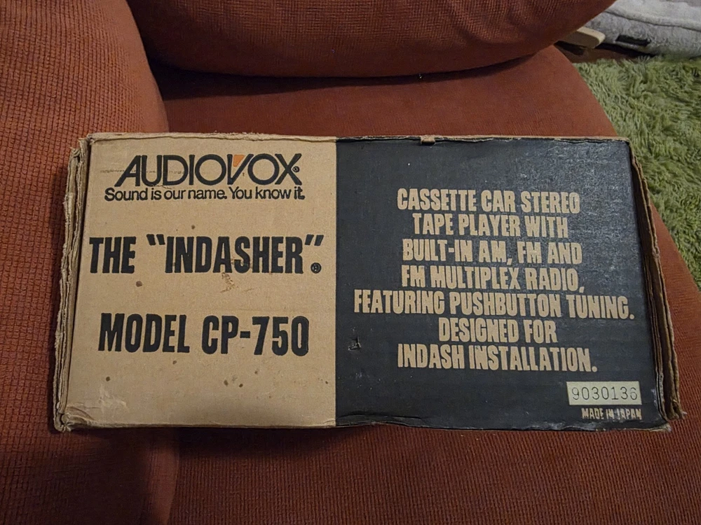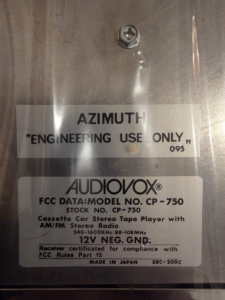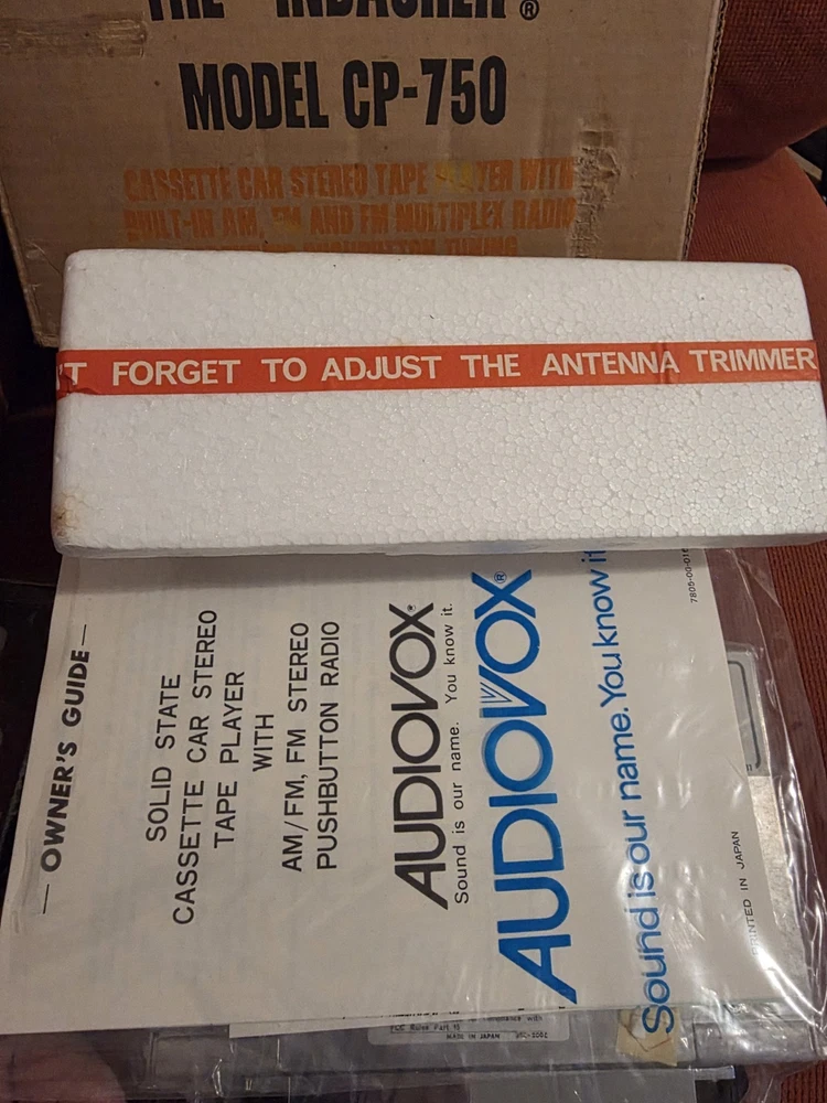 The vintage Audiovox CP-750 cassette player is a classic car stereo unit made in Japan. With a compact 1 DIN size, this retro audio device offers a nostalgic touch to any vehicle with its cassette player functionality. Perfect for those who appreciate vintage technology and want to add a unique sound experience to their car, this Audiovox stereo is a piece of automotive electronics history.