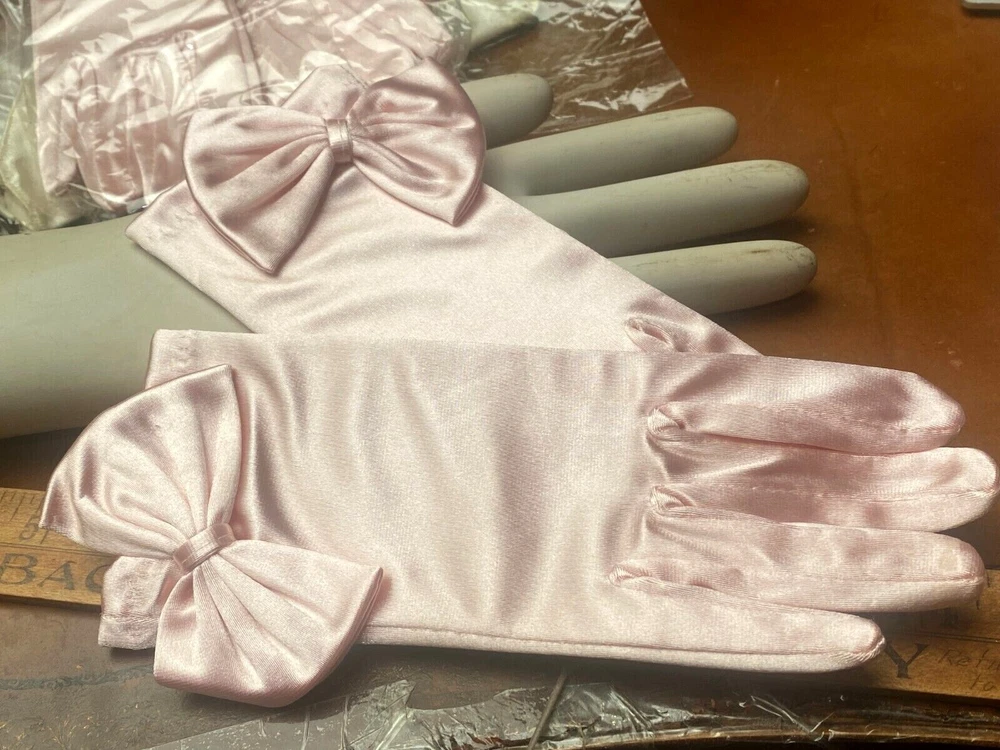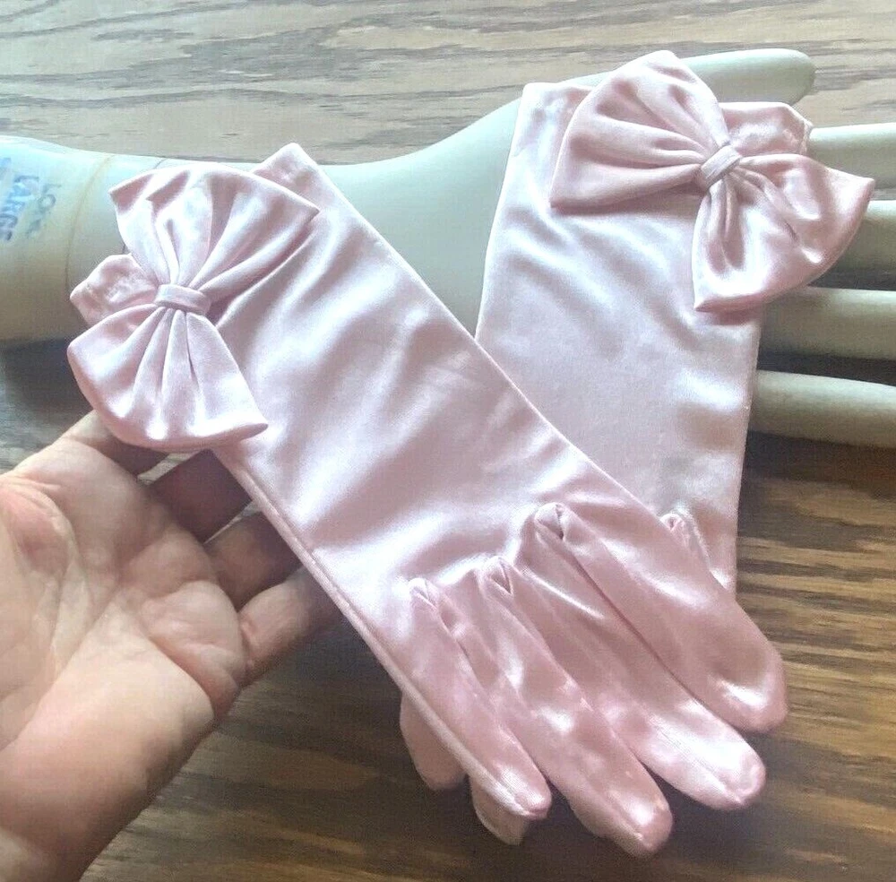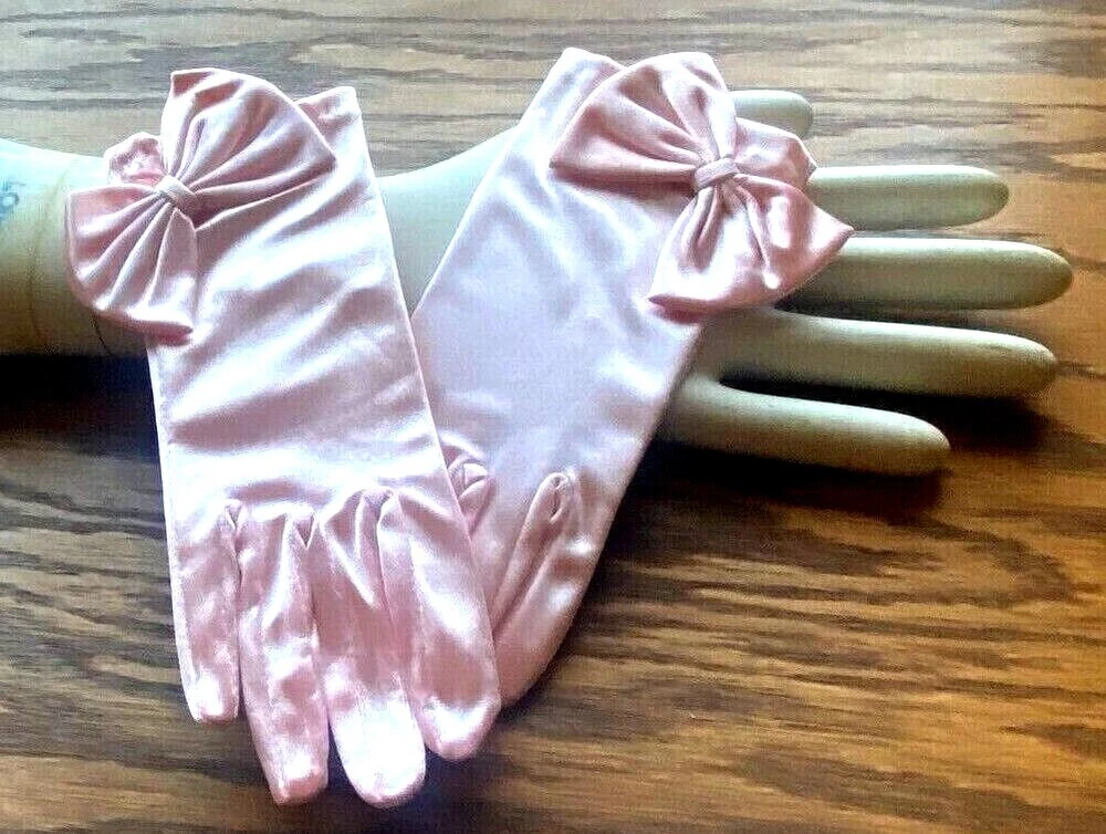 This listing is for one pair of Gloves One Size (they stretch) 1960's SATIN WRIST GLOVES Do visit my Ebay store for many more VINTAGE HATS/GLOVES Also Clearance Sale Overstock Ebay Store: trimsandribbons Ebay Seller: trims-n-treasures Instagram: linagallthetrimmings Shipped with USPS First Class/Advantage - Buy More from My Store to Save on Shipping. For combined shipping place items in your cart then request total from top right of cart using a computer. I will then send you an invoice to pay. Feature is not present on mobiles. .