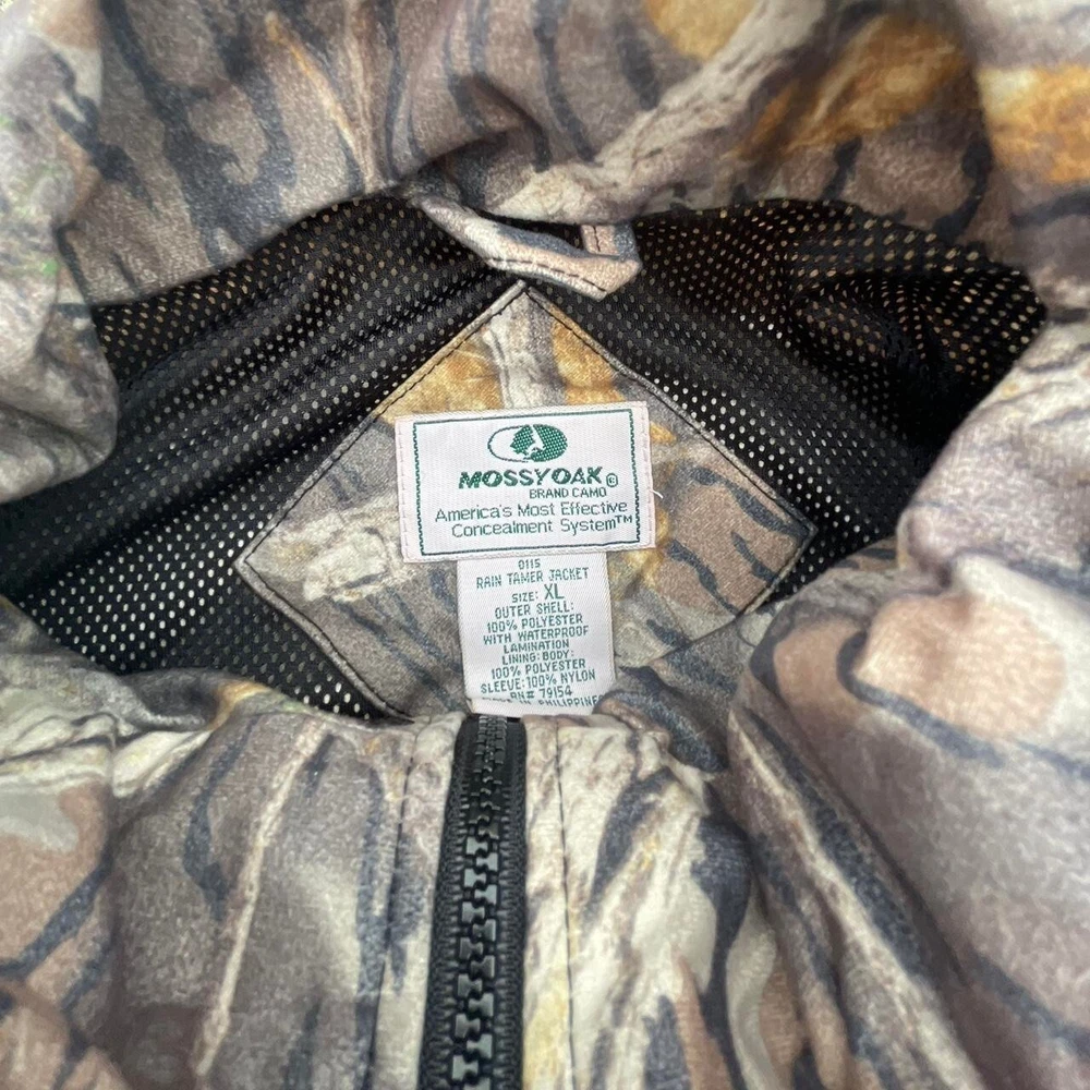 super cool vintage mossy oak zip up camo jacket with a great crop! with its zip-up design and button closure, it's perfect for layering over your favorite outfit. the jacket is sized XL and has a great crop, making it a comfortable and stylish choice for men, women, or anyone! the brown color adds a touch of sophistication, and the pattern is sure to turn heads. whether you're out in the field or running errands around town, this jacket is a versatile addition to your wardrobe.
