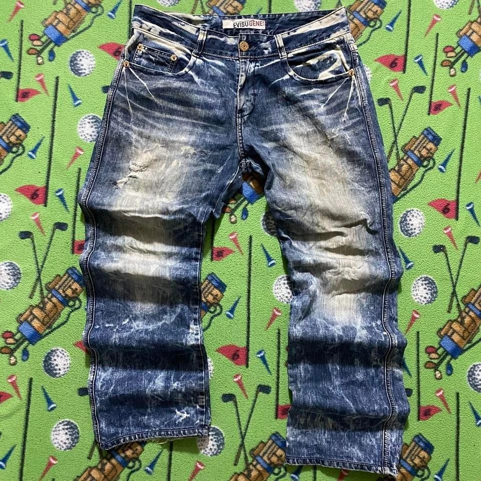 vintage y2k baggy skate japanese wide leg evisu denim acid wash jeans size: 36x31 with 9in leg opening condition: 9/10 - some washable dirt and slight distressing #evisu #denim #jeans #y2k #skate