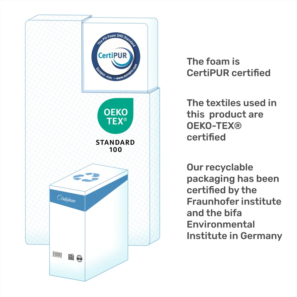 ☁ OUR MISSION: Good sleep for everyone. Anytime and anywhere. ☁ THE VISCOELASTIC FOAM: The viscoelastic foam is especially suitable for people who tend to prefer a softer sleeping surface. Our toppers provide unique pressure relief, and with the distribution of pressure, the body is positioned in an anatomically and ergonomically optimal position. This promotes better circulation and thus a deep and restful sleep. ☁ ADDITIONAL PRODUCT BENEFITS: Thanks to the nubs on the bottom and the four straps for attachment at the corners, our mattress topper is non-slip. The cover, made of 60% polyester and 40% viscose, is removable and washable up to 104°F. ☁ CERTIFIED QUALITY: All components of our product are certified: 1) The foam, 2) the cover, and 3) the packaging. Our toppers are made without heavy metals or formaldehyde and are suitable for allergy sufferers. ☁ SUSTAINABILITY: Through better material selection, we strive to create long-lasting products. Additionally, our cardboard packaging is made from recycled paper.