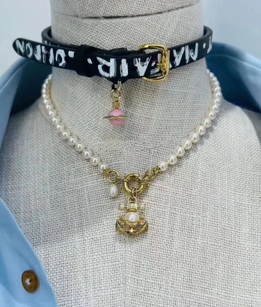 Di mensions: chocker whole length is around 48cm( changeable from 32cm to 44cm), the orb pedant size is around 1cm Excellent condition Includes dust bag, shopping bag, box and card
