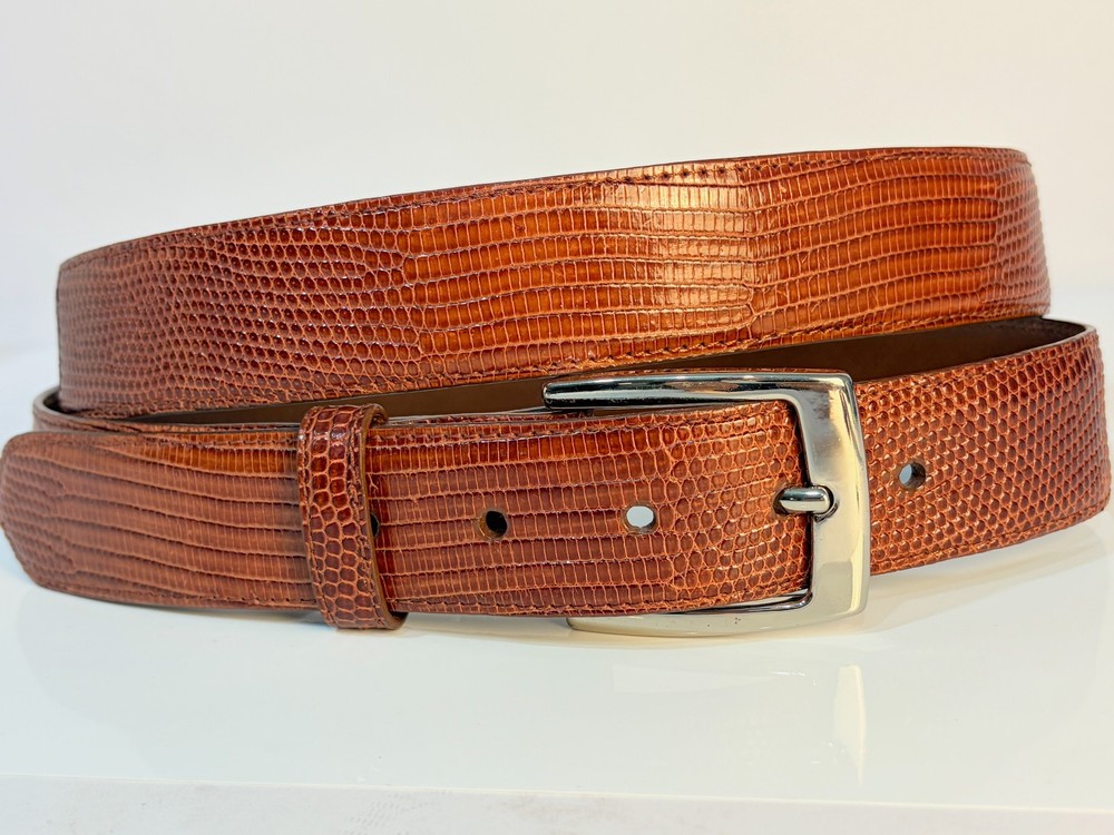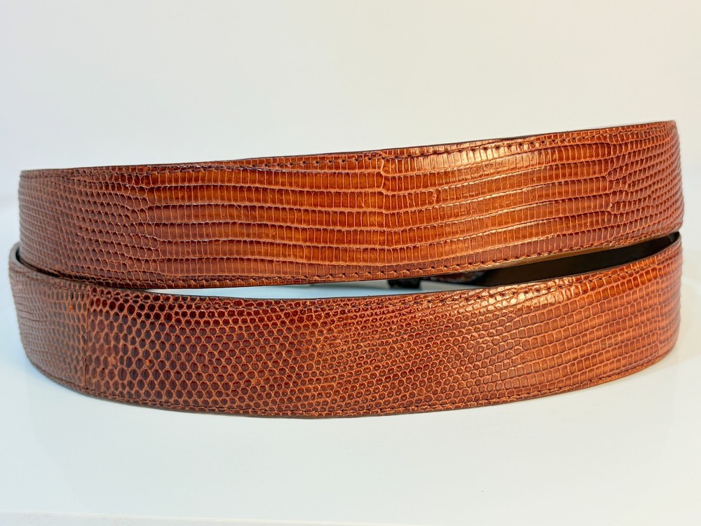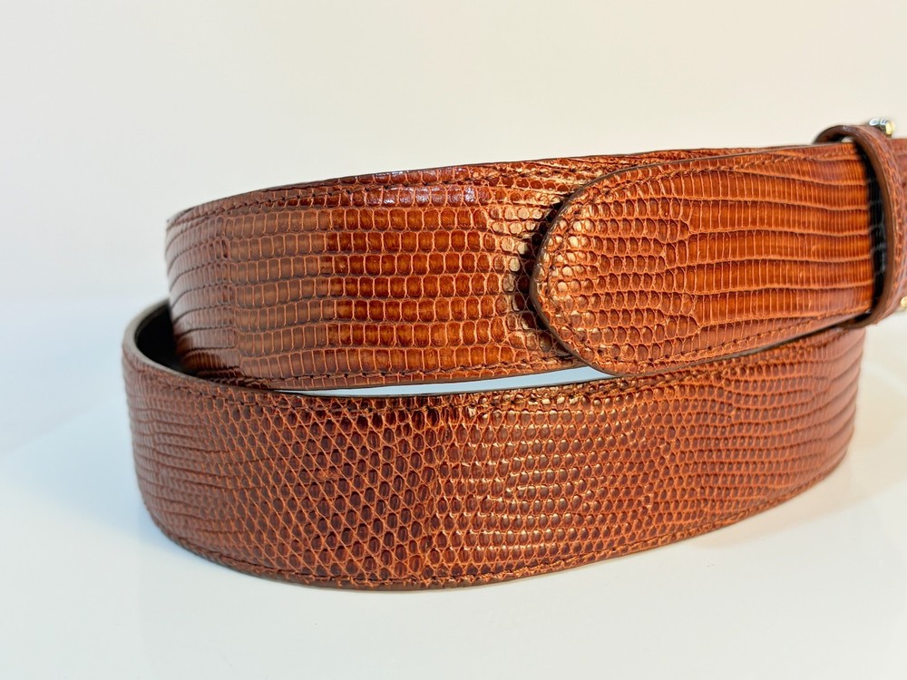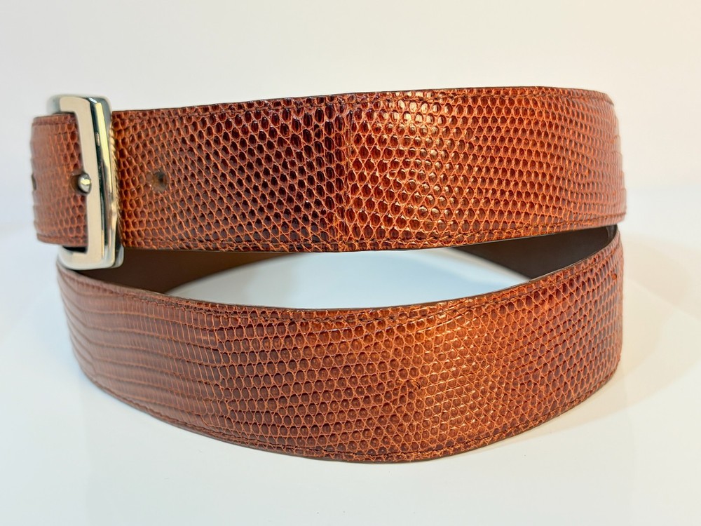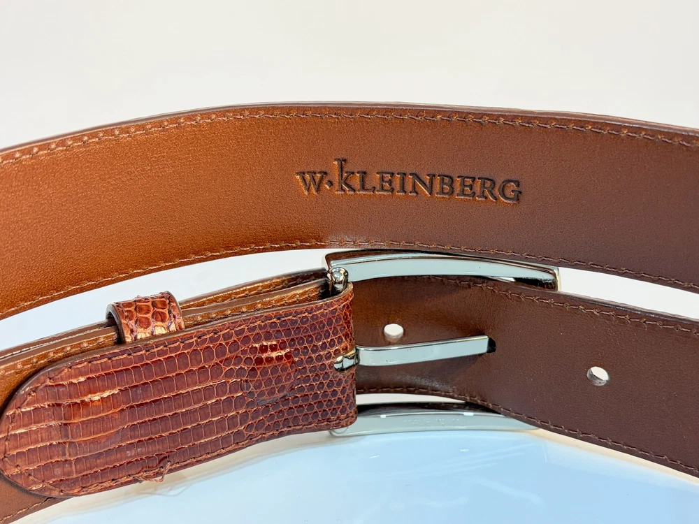 w. Kleinberg Genuine Lizard Skin Belt Men's 44 Brown Made in USA 1 3/8" Wide