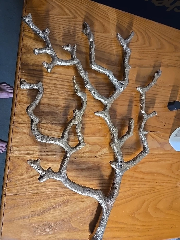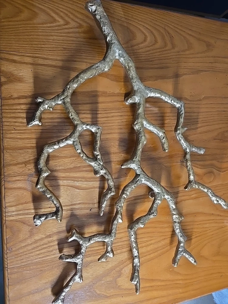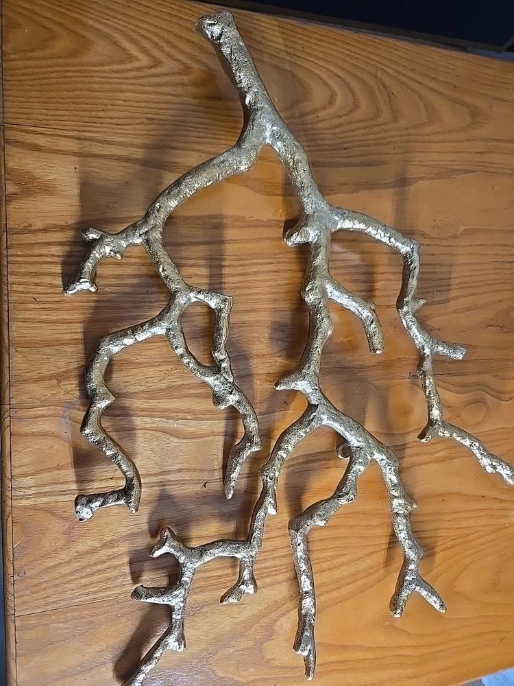 Gold toned almost like a family tree limb. It is 21"× 17 approximately.