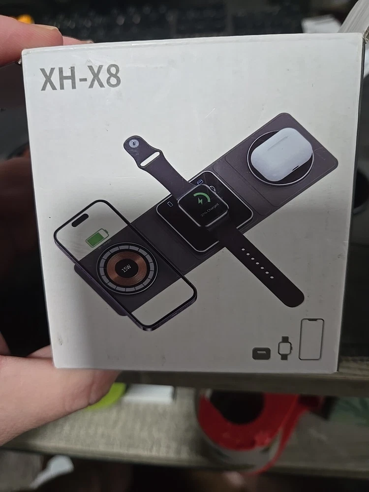 Travel wireless charger. Will charge apple product, per the instructions, and it did charge my android watch and phone. I have no wireless headphones to test but all 3 spots work