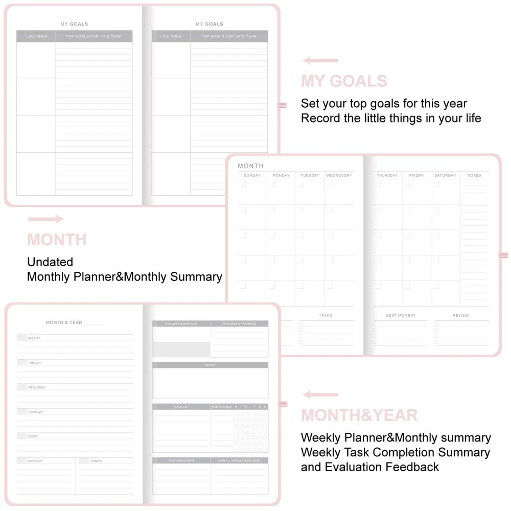 wisefine Undated Academic Weekly Monthly Planner for 2024, 2025, 5.6"x8.2", 52 Weeks and 12 Months Hardcover Journal Agenda with Pen Holder, Thicker Paper, Stickers, Inner Pocket for College If you feel like you need a place to write down your long-term goals in, the Oneirom undate planner is what you’re looking.Its compact size and lightweight design allows you to carry it everywhere.Not to mention, its elegant appearance makes you want to make a perfect start every morning! ABOUT THE PLANNER »Compact size: 5.6" x 8.3" x 0.71" »1 year undated: 12 monthly views & 60 weekly views »100 gsm ivory woodfree paper »Pen holder »1 bookmarks »2x sheet of colorful stickers »192 Pages/96 Sheets »Inner Pocket »Elastic Closure SPECIAL DESIGN»My Goal PageLife Area&Top Goals for one Year »Month PageMonth Notes/Goals/Taks/Best Moentent/Review »Week PageWeek's Main Goal/Priorities/Notes/To do list/Habits(Skills)/This week's Wins/How to improve next week »Inner pocket - Use the handy pocket to stash business card, small items, or planner stickers. »Soft Faux Leather cover is environmentally friendly and soft touch. »Full yearly reference calendar, you can use the monthly calendar stickers for easy browsing. »Comfortable design, with rounded arc corners which will not cut the hand. »Lay-Flat 180°Flexible Planner – Lets you read more easily and makes note-taking effortless. START PLANNING AND ACHIEVING YOUR GOALSWith simple and elegant design, the planner is the perfect choice for organizing your life.The undate planner can help you fix procrastination and keep you accountable! Imagine what your life would be like if you reach your all goals. SPECIAL GIFT A special gift you can share with your friends and family. Perfect for Christmas gift, New Year gifts or Birthday presents. ❉UNDATED & COMPACT SIZE - Comes undated, unlike most dated planners, you can start using it at any time of the year without wasting a page. 12 months run in bulk and are separated from 60 weeks. Compact Size: 5.6" x 8.3" - this planner is made to go, and is perfect for a lady's handbag. ❉PROFESSIONAL DESIGN - Featuring 12 months of monthly and weekly pages for easy academic year-round planning.180°Lay Flat Planner/Yearly Goals Pages/ Leather Cover/2 Contact Pages/Pen Holder/Elastic Closure/Inner Pocket/Calendar Stickers/5 Weeks a Month/1 Bookmarks. ❉THICK WOOD-FREE PAPER - The academic planner features 80 sheets / 160 pages made from wood-free Ivory paper, which means it resists damage from light and air, ensuring long-lasting performance from one year to the next. The premium paper is environmentally friendly and protects eyes from strain because of the natural materials we incorporate. ❉ACHIEVE YOUR GOALS - Simple and Compact Oneirom Planner will help you to create a vision for your life, define and breakdown your short and long-term goals in each area of your life, and incorporate these goals into your monthly, weekly, and daily agenda. Stop procrastinating and start turning your big dreams into reality with this productivity journal! ❉SPECIAL GIFT - A special gift you can share with your friends and family. Perfect for Christmas gift, New Year gifts or Birthday presents.And weekly planners are perfect planners for business planning, bullet journals, college & academic planning. For any reason you are not 100% satisfied with Oneirom, please do not hesitate to contact us. We offer a worry-free after sales service for you! Shipping from the USA All of our products are shipped from the USA, ensuring quick delivery to your destination. Payment We offer the following payment methods: PayPal, credit card, bank transfer, and eBay's secure payment system. Free Shipping & Free Returns Shipping within the USA is FREE. Additionally, any return is absolutely free for you. Risk-Free Purchase You have the option to return an item within 30 days without any justification. We cover the return shipping costs! Fast Shipping We ship immediately upon receipt of payment. Generally, the package is delivered within 2-3 days in the USA. If it takes longer, we will contact you. Quality and Costs Made in Europe, USA, China No customs fees or additional charges Total satisfaction guarantee Invoice with declared VAT available upon request in .pdf format Feedback Your feedback is very important to us. After you pay for your purchase, you will automatically receive positive feedback from us.
