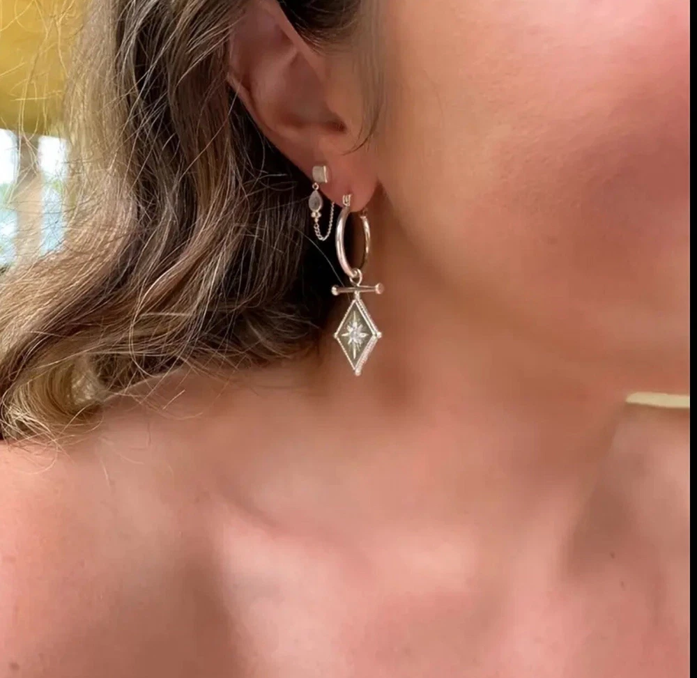 The women's boho asymmetrical silver earrings feature a natural silver-plated design with an excellent cut grade. These dangle/drop earrings are ideal for various occasions like Mother's Day, weddings, birthdays, and more. The earrings showcase a unique asymmetrical shape and are adorned with a beautiful silver color. The design is themed around beauty, art, and bohemian style, making them a perfect accessory for a touch of elegance and individuality.