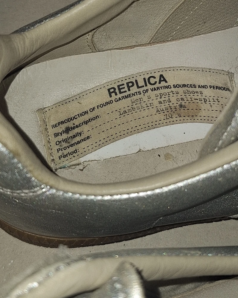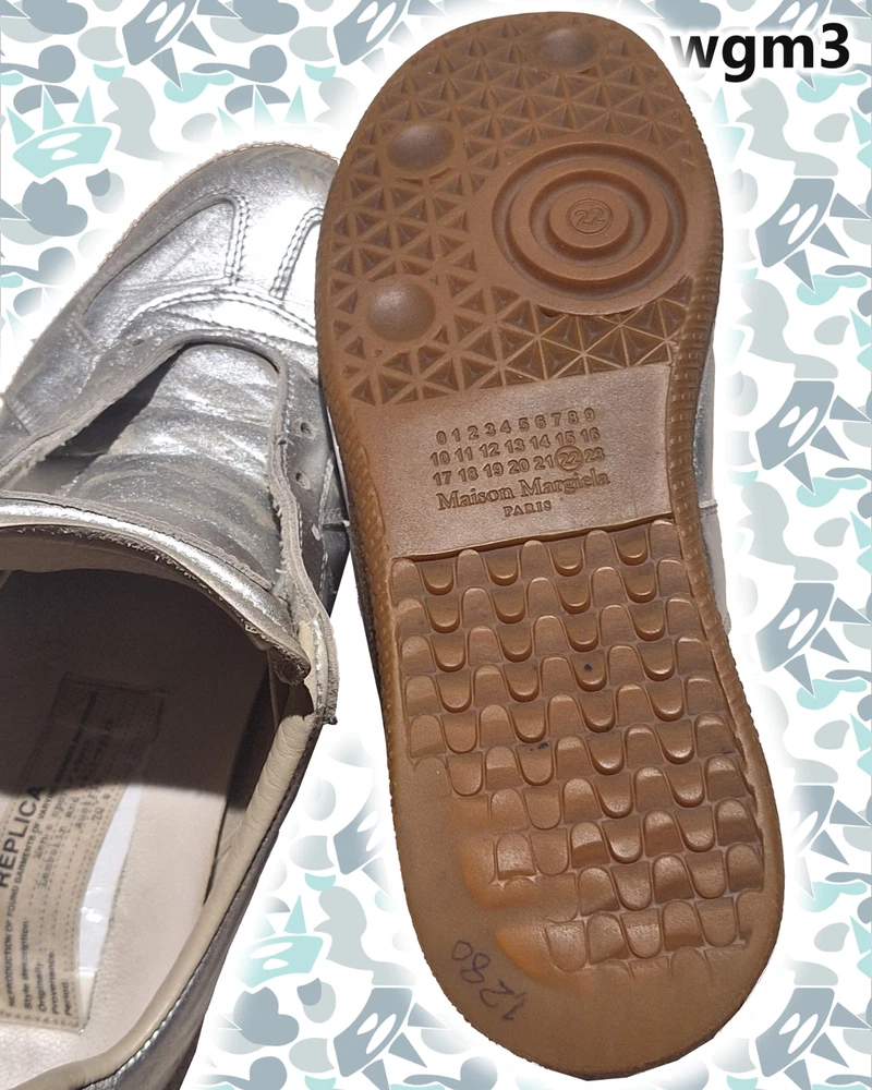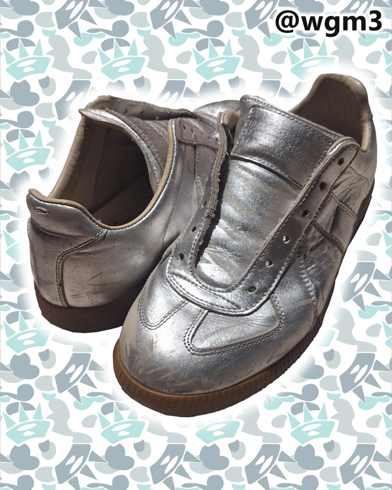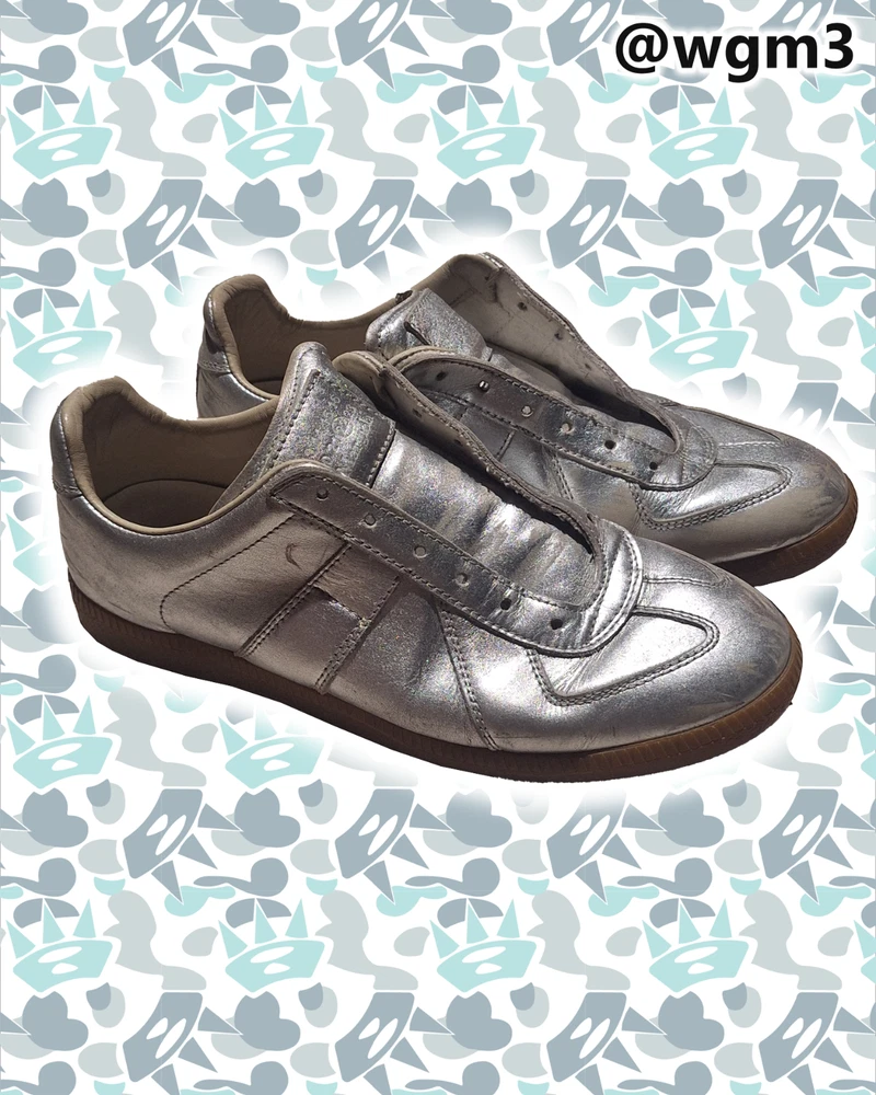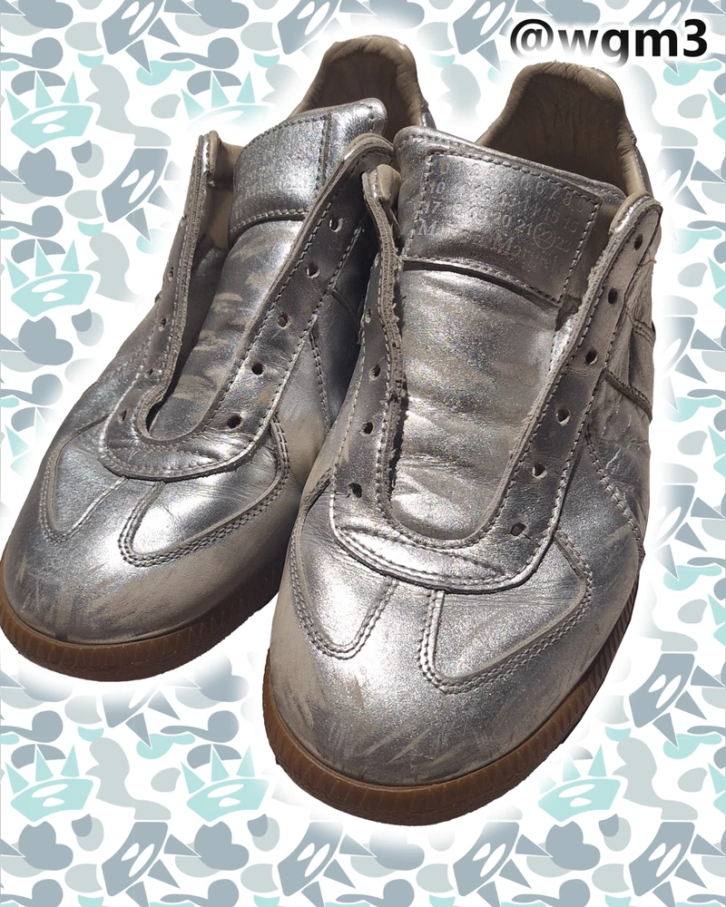 @WGM3 Real margiela gats. Rare silver handpainted colorway Doesn't have shoelaces but I'd be glad to give you a replacement just LMK! Size 38 EU - 7.5 womens Trying to sell these for a low price! @wgm3