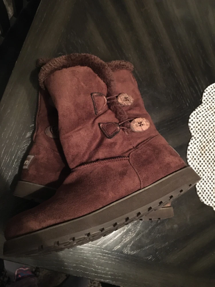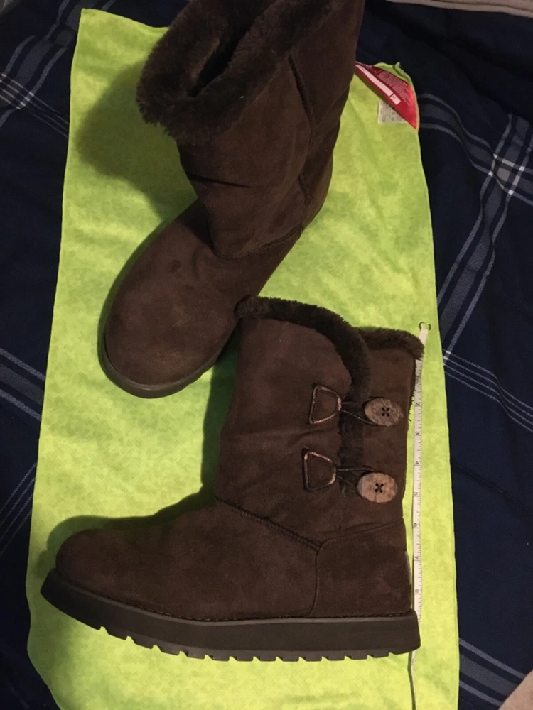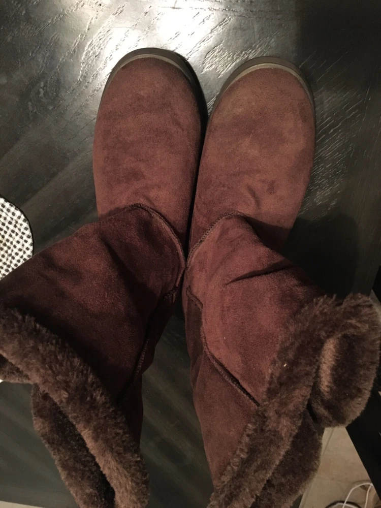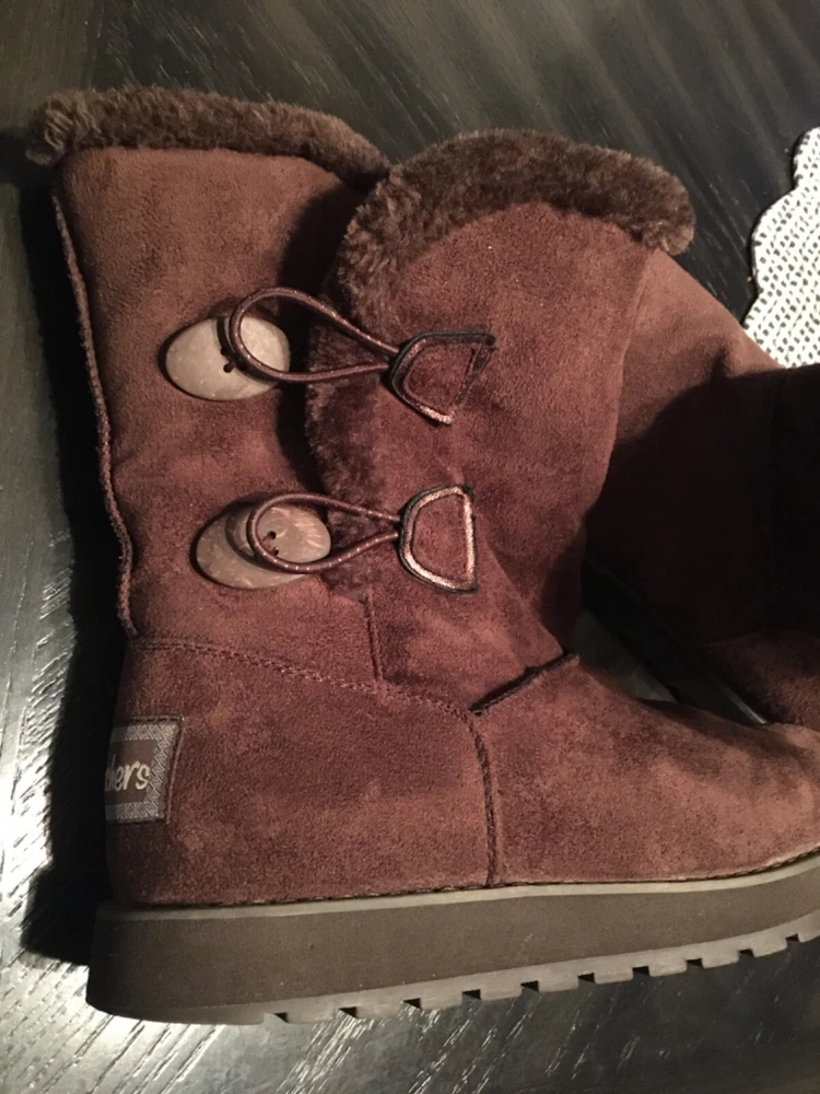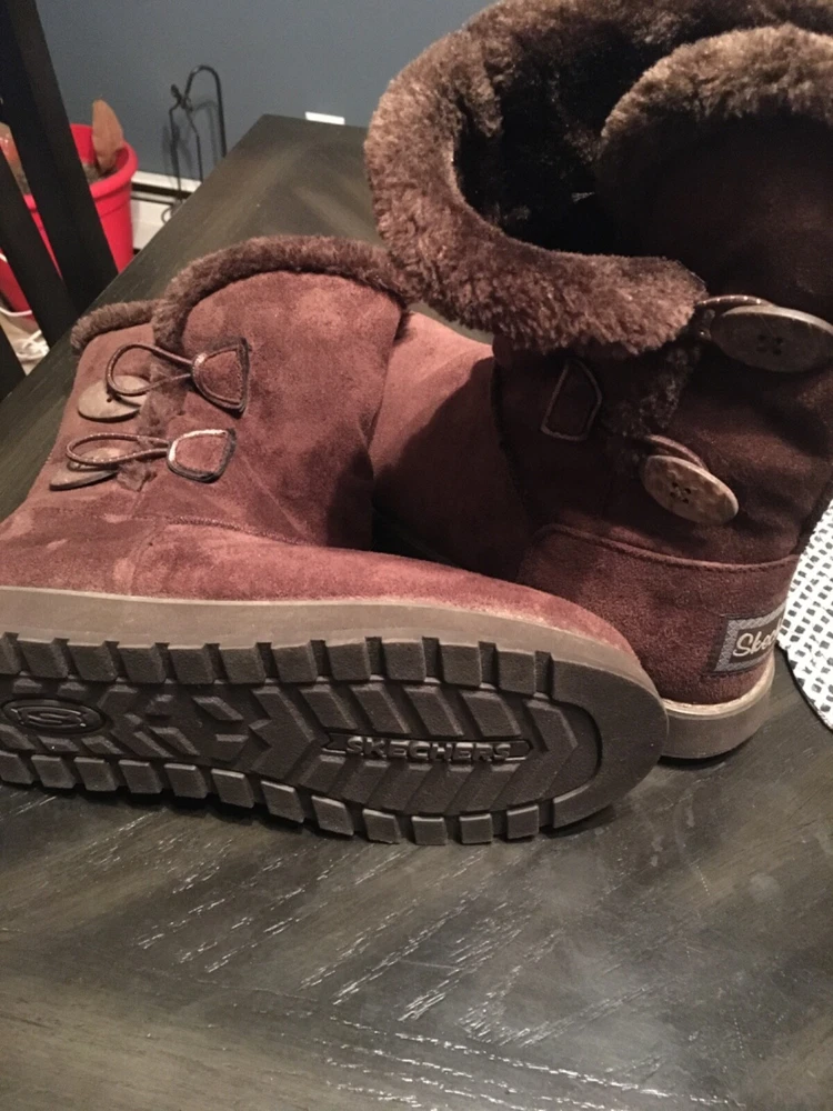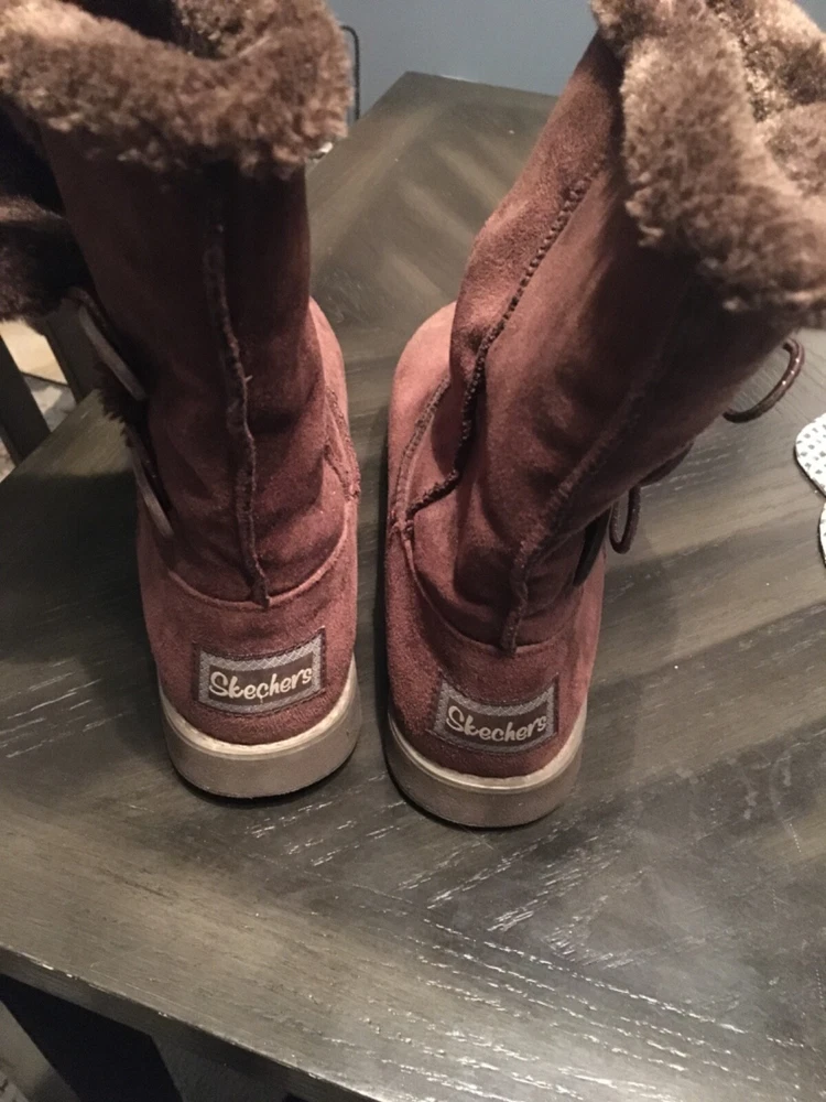 Womens size 7 sketchers winter boots faux fur lined suede outer brown color