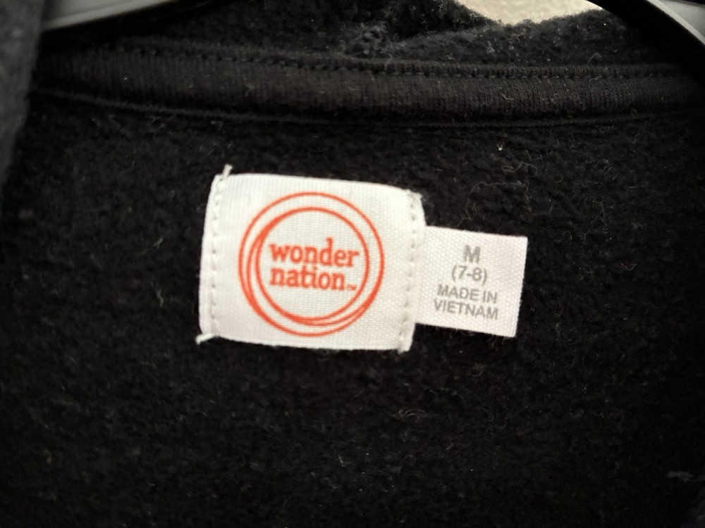 wonder nation Kids Girls Heart Print Fleece Long Sleeve Pullover Hoodie Black M 7-8. Condition is pre-owned. Smoke free, pet free home. Shipped via USPS Ground Advantage. In very good condition. Free of rips or stains.