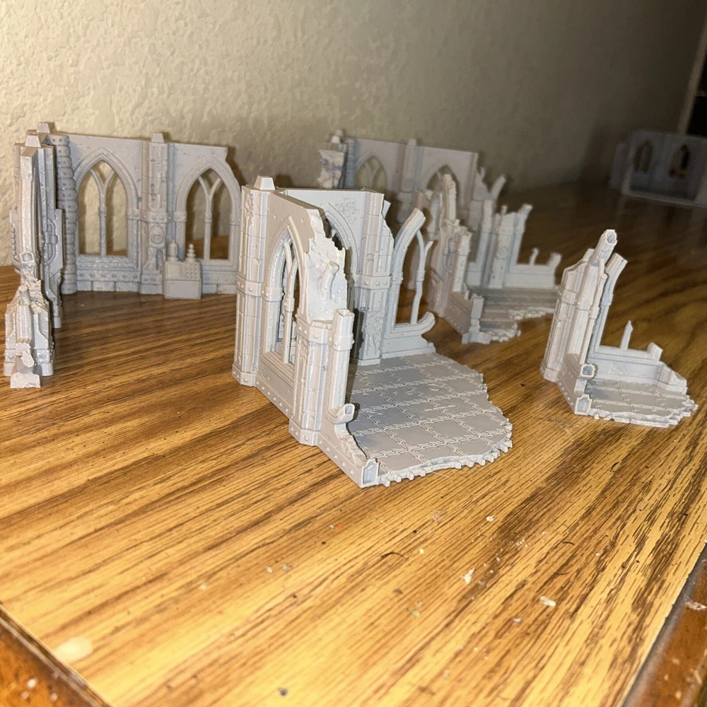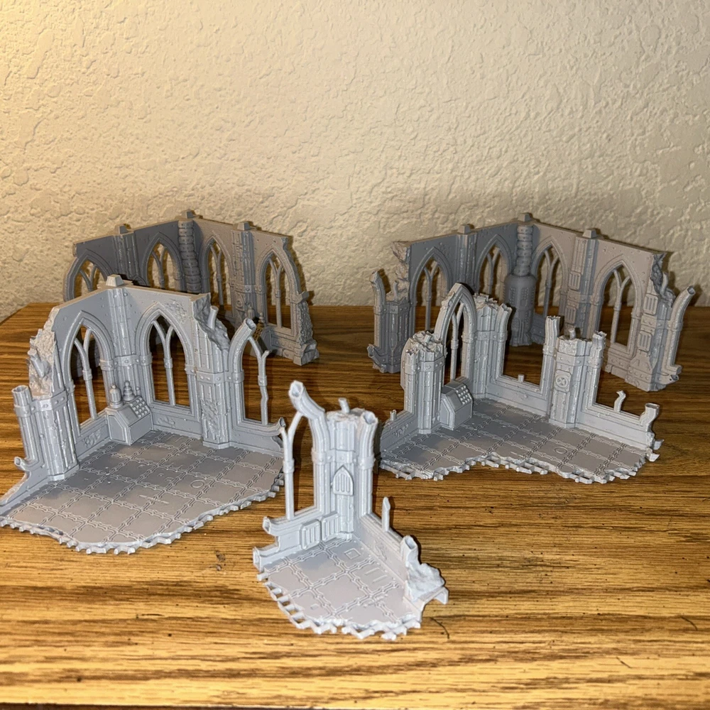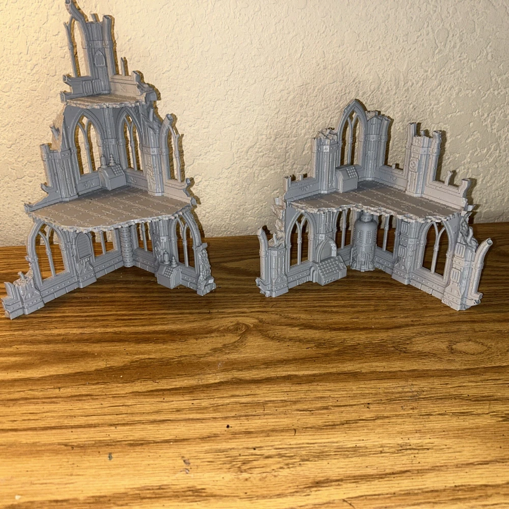 This is a large 5 piece set Printed Battlefield Gothic Grim Dark Scenery Terrain Set Unleash the full potential of your tabletop wargaming and RPG adventures with this exquisite 3D printed Terrain Set. Each set features multi level pieces that will add depth and excitement to your game mat. USA Based Dimensions (in millimeters and inches): Building 1: L(156.1) x W(163.2) x H(280) Building 1: L(6.5") x W(5.5") x H(11") Building 2: L(160) x W(160 x H(185) Building 2: L(6.5") x W(6.5") x H(7.2") Please allow us up to 3 business days to prepare your order (usually 1 - 2), after which you'll receive a shipping notification. If you're planning to purchase multiple items, don't hesitate to contact us โ we're happy to explore consolidated shipping options. Our products stand proudly in terms of quality, We print at a scale of 0.15mm which takes longer to print than other sellers but is well worth the quality and strength. It's important to mention that 3D printing can sometimes leave minor post-printing cleanup tasks. A base coat application will have your terrain set looking pristine. Custom Creations: Have specific terrain elements in mind? Need custom components or miniatures to enhance your gameplay? Reach out to us for a personalized quote. Whether it's design, 3D printing, or a combination of both, we're eager to collaborate with you. ๐ Reach Out to Us: Questions, special requests, or simply need more information? Send us a message, and we will be delighted to assist you. ๐ Licensed Seller: Rest assured that we are a licensed seller of Terrain4print designs and models. Your purchase supports creativity and innovation in the world of tabletop gaming.