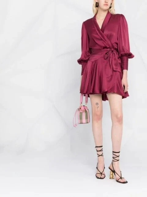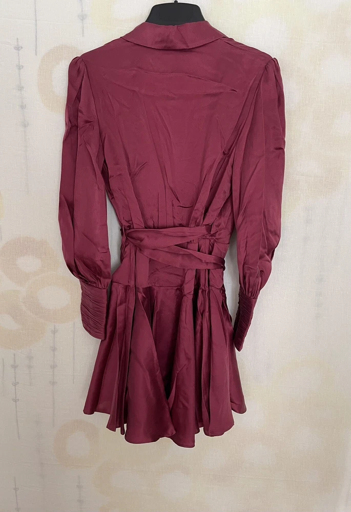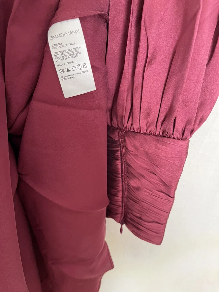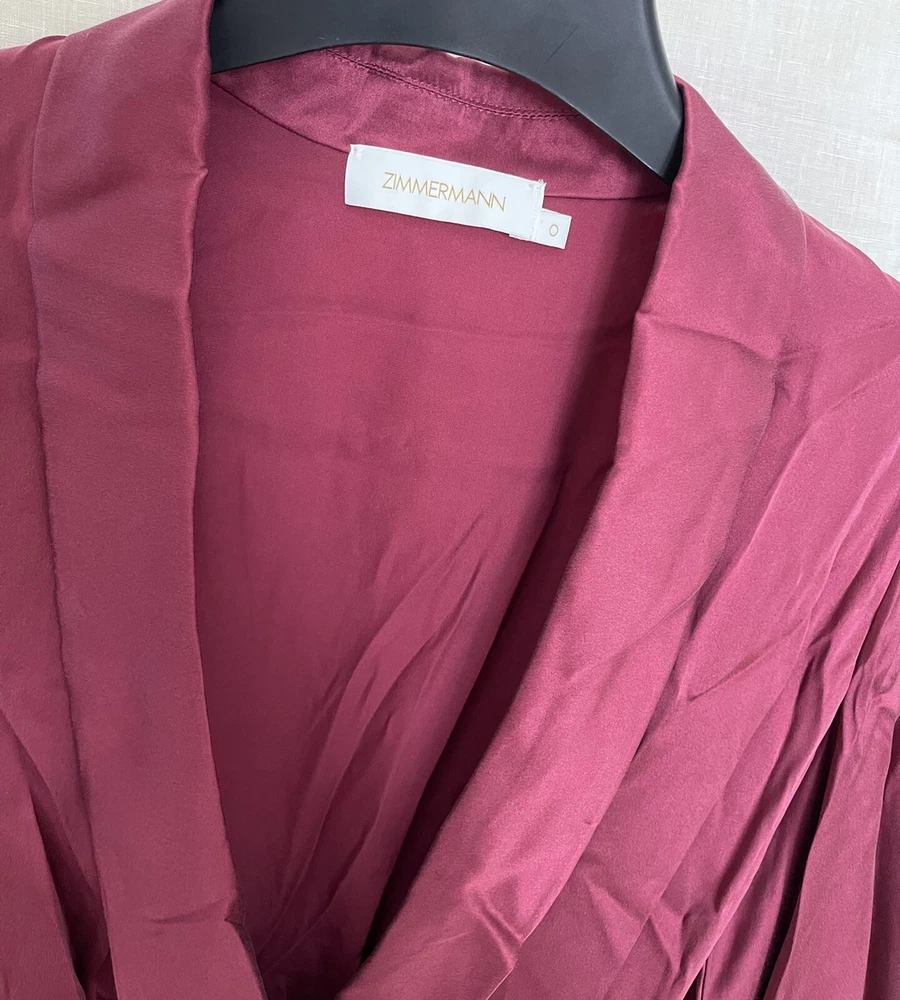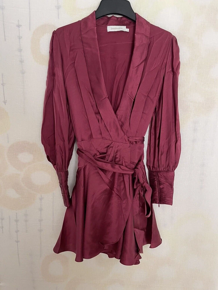 zimmermann silk wrap dress. Sent with Australia Post Standard Small Box/Satchel. 100% silk Dry clean only Unlined Wrap styling with tie closure Ruched cuffs with zipper closure