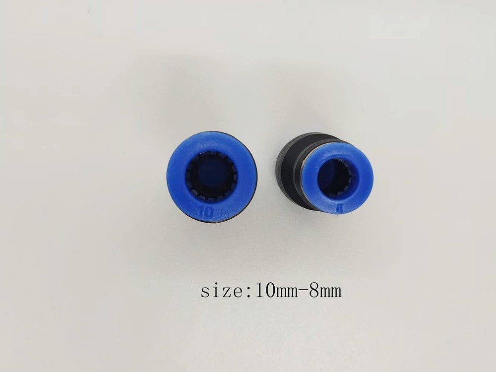 Feature: 1.pneumatic push lock fittings Easy to install, You Can Easily Insert or Pull out the quick connect air hose fittings Without Any Tools 2.The Clip of Connecting Air Pipe is Made of Strong Plastic Material, Which is Not Easy to Fall off After Connection Adopt Sealing Component. 3.You can easily change the tubing connector direction. Narrow space is also suitable with the push. Specification: 1.Working Pressure:0-1.0MPa | 0-145psi 2.Applicable Tube: PU / PA / PE / PVC 3.Working Temperature:0-60℃ | 32-140℉ 4.After Completing the Connection, Please Gently Pull the Tube with Your Hand to Make Sure That It is Completely Connected Without Falling Off. 5. Size: Suitable for 10mm - 8mm tube OD Package includes: 10 pieces pipe pneumatic reducer Notice 1. The unit of this pneumatic reducer is metric size. Please check whether the outer diameter of the pneumatic tube is based on metric size or inch size before purchasing. 2.The Cut Of The Air Line Hose Must Be Completely Clean And Cut Straight Without Chips Or Crumbs. The Profile Of The Air Tube Must Be Round. 3.No Elliptical Or Other Form. When Inserting The Tube Into The Push Lock Fitting Push The Tube In Until You Feel The Tube Get Stuck In The Inner Shoulder Of The Air Hose Fitting. 4.Requires Exerting Force On The Air Tube, It Will Pass Through The Rubber Ring Located On The Inside Of The Air Line Fitting For Complete Sealing.The product is a reducing pneumatic joint 5.during disassembly of tubing before disconnection of tubing, always check tubing internal pressure for zero. The size is 10mm * 8mm, for your purchasing experience, please confirm your pneumatic tube size again 【Product Name】Direct push reducing hose fittings 【Material】Plastic and stainless steel 【Size】10mm Tube OD x 8mm Tube OD 【Maximum Pressure】0~145Psi【Working Temperature】32~140°F 【Features】Both ends are controlled to connect and disconnect pipes of different sizes,Quick and simple installation,designed for the polyurethane or nylon tubing.